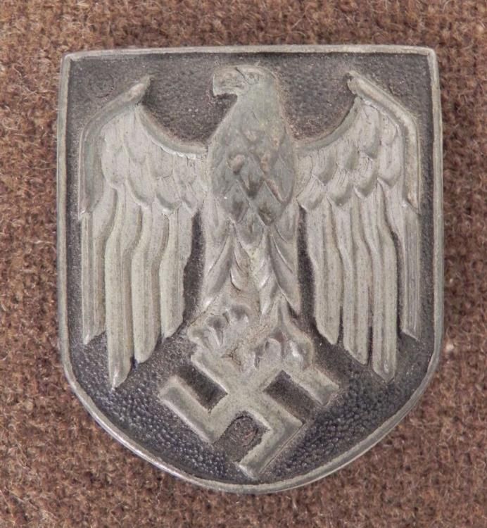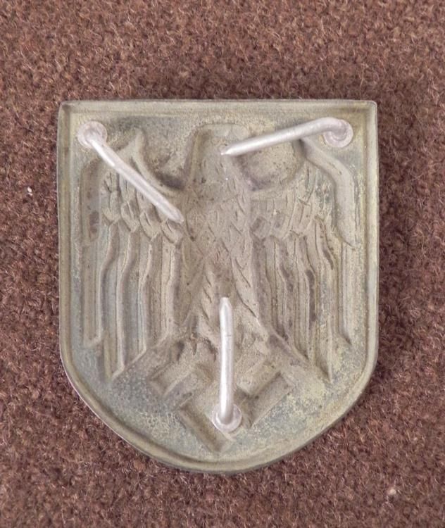 NAZI VISOR EAGLE/SWASTIKA W/IRON CROSS-MKD GES GESCH 17 * NICE ORIG-2 OUT OF 3 PRONGS PRESENT *