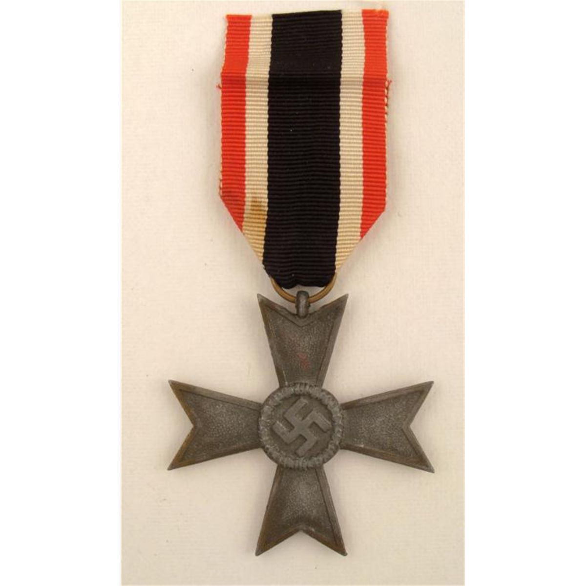 OFFERED HERE IS A NAZI WAR MERIT CROSS WITHOUT SWORDS (CIVILIAN) AND RIBBON. IT HAS A MALTESE CROSS WITH A SWASTIKA ON ONE SIDE & 1939 ON THE OTHER SIDE. *