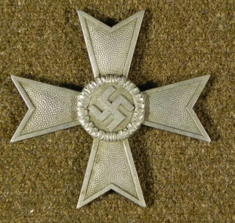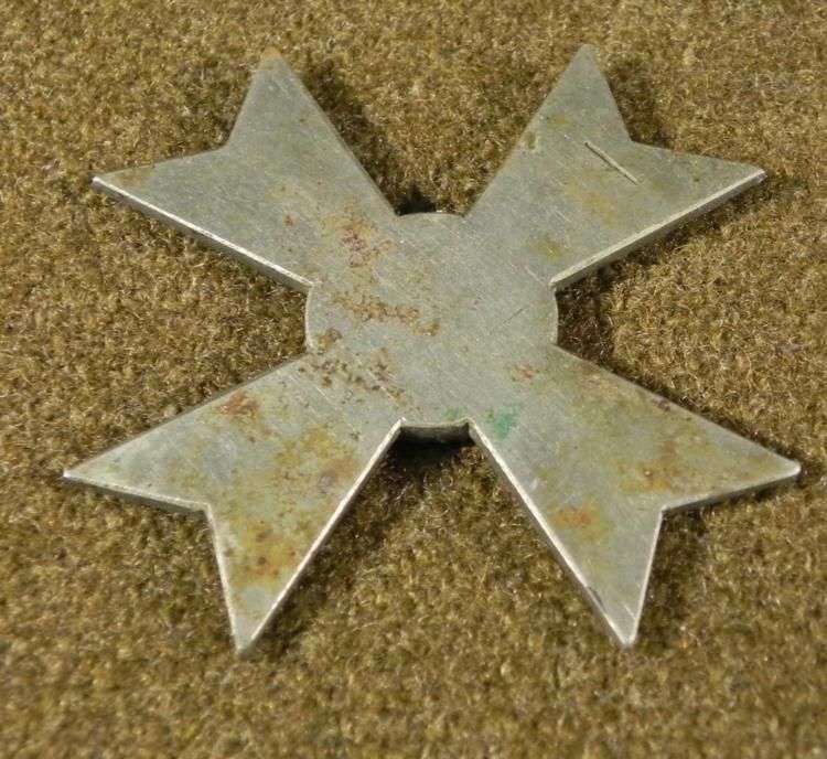 NAZI WAR MERIT CROSS-SILVER-1ST CLASS-ORIGINAL-UN-FINISHED-TAKEN FROMFACTORYINTERESTING PIECE-GUARANTEED ORIG-WAR MERIT CROSS WITHSWASTIKA ON MALTESE CROSS-MARKED WHERE LATCH WAS TO BE PLACED-TAKEN BYVET AT WARS END FROM MEDAL FACTORY