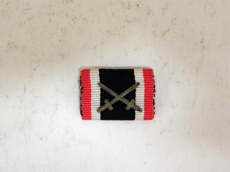 HERE IS A NAZI WAR MERIT MEDAL W/SWORDS RIBBON BAR-MINT ORIGINAL. IT HAS A GRAY WOOL BACKING WITH PIN.