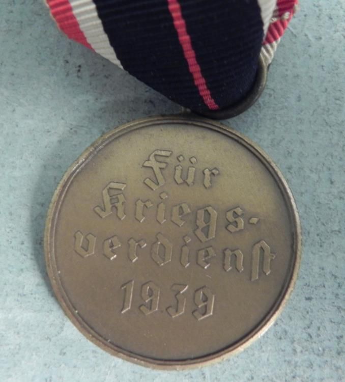 NAZI WAR MERIT MEDAL WITH RIBBON-RARE ORIGINAL-FOR CIVILIANS WORKING IN WAR FACTORIES NICE ORIGINAL KRIEGSVERDIENSTMEDAILLE--FOR CITIZENS SHOWING EXEMPLAIRY EFFORT IN WWII WAR FACTORIES PRODUCING AIRCRAFT, TANKS, ETC-FRONT SHOWS WAR MERIT CROSS W/SWASTIKA