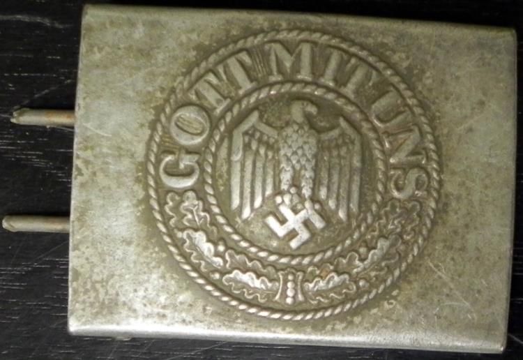 THIS IS A NICE ORIGINAL NAZI WEHRMACHT BELT BUCKLE-STEEL-GOTT MIT UNS WITH EAGLE & SWASTIKA.