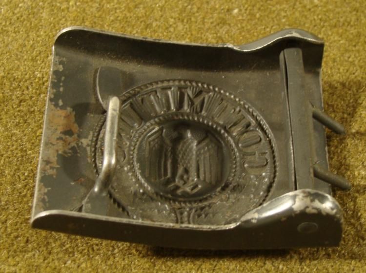 NAZI WEHRMACHT FIELD COMBAT BUCKLE-ORIG-DARK FACTORY PAINTED FOR COMBAT- * RONDELL READS "GOTT MIT UNS" WITH EAGLE & SWASTIKA *