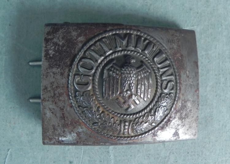 NAZI WEHRMACHT NCO BELT BUCKLE-ORIG-VET'S COMBAT FIELD PICKUP NICE BRINGBACK--SHOWS FIELD COMBAT WEAR