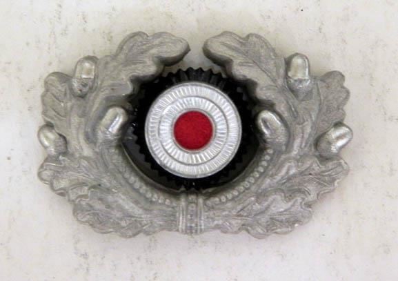 THIS IS AN ORIGINAL NAZI WEHRMACHT VISOR WREATH AND COCKADE. NICE, MINT GUARANTEED ORIGINAL--MAKER MARKED "2"--ALL PRONGS PRESENT---ACORNS BRIGHT--COCKADE WITH RED WOOL CENTER