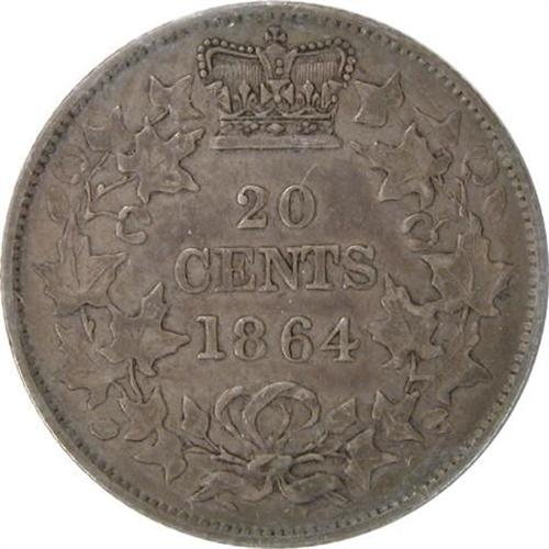 New Brunswick 1864 Twenty Cents VF. Lightly toned