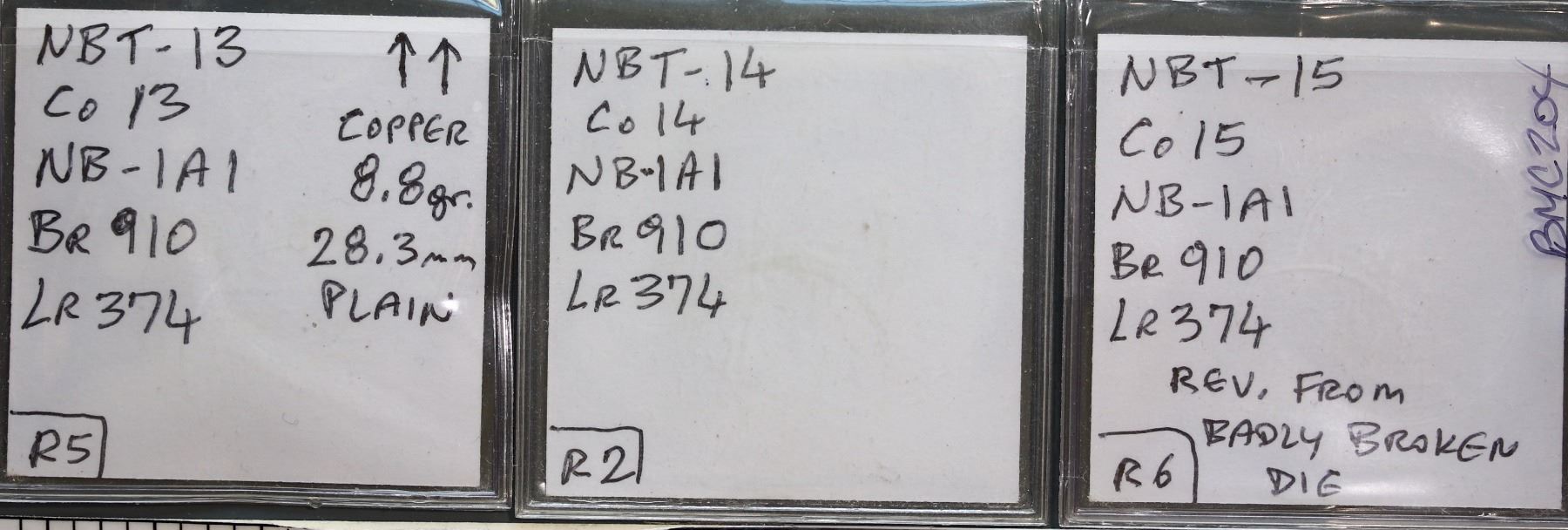 NB-1A1, Breton 910, Marelic NBT13, 14 & 15. Lot of 3 tokens VF+ and better. Rarity 2-6.