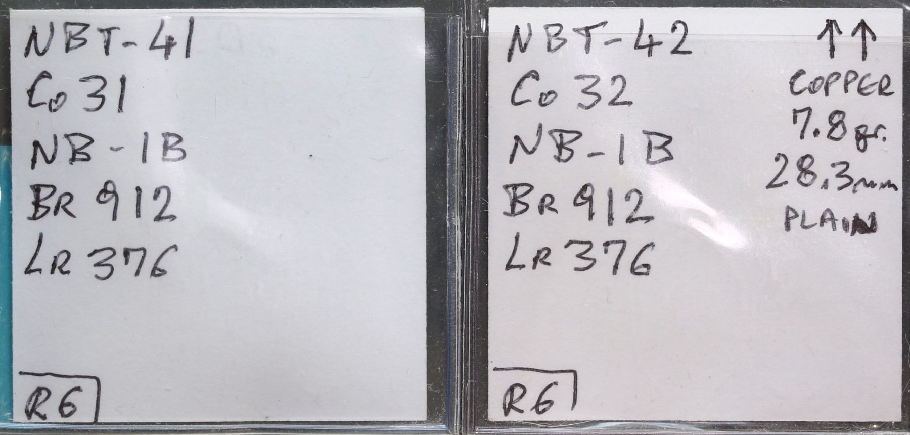 NB-1B (Marelic NBT-41 & NBT-42, Breton 912. Lot of 2 tokens both with variants. Designated Rarity 6.