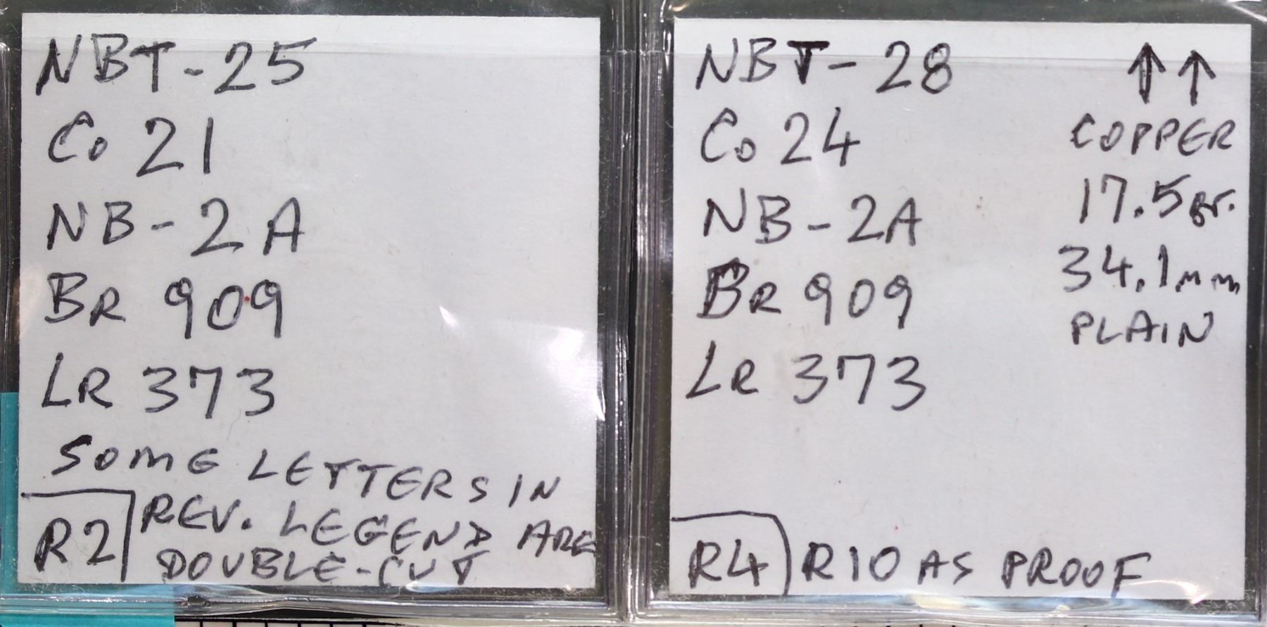 NB-2A (Marelic NBT-25) & (NBT-28) both Breton 909 issues designated Rarity 2 and 4. Lot of 2 issues.