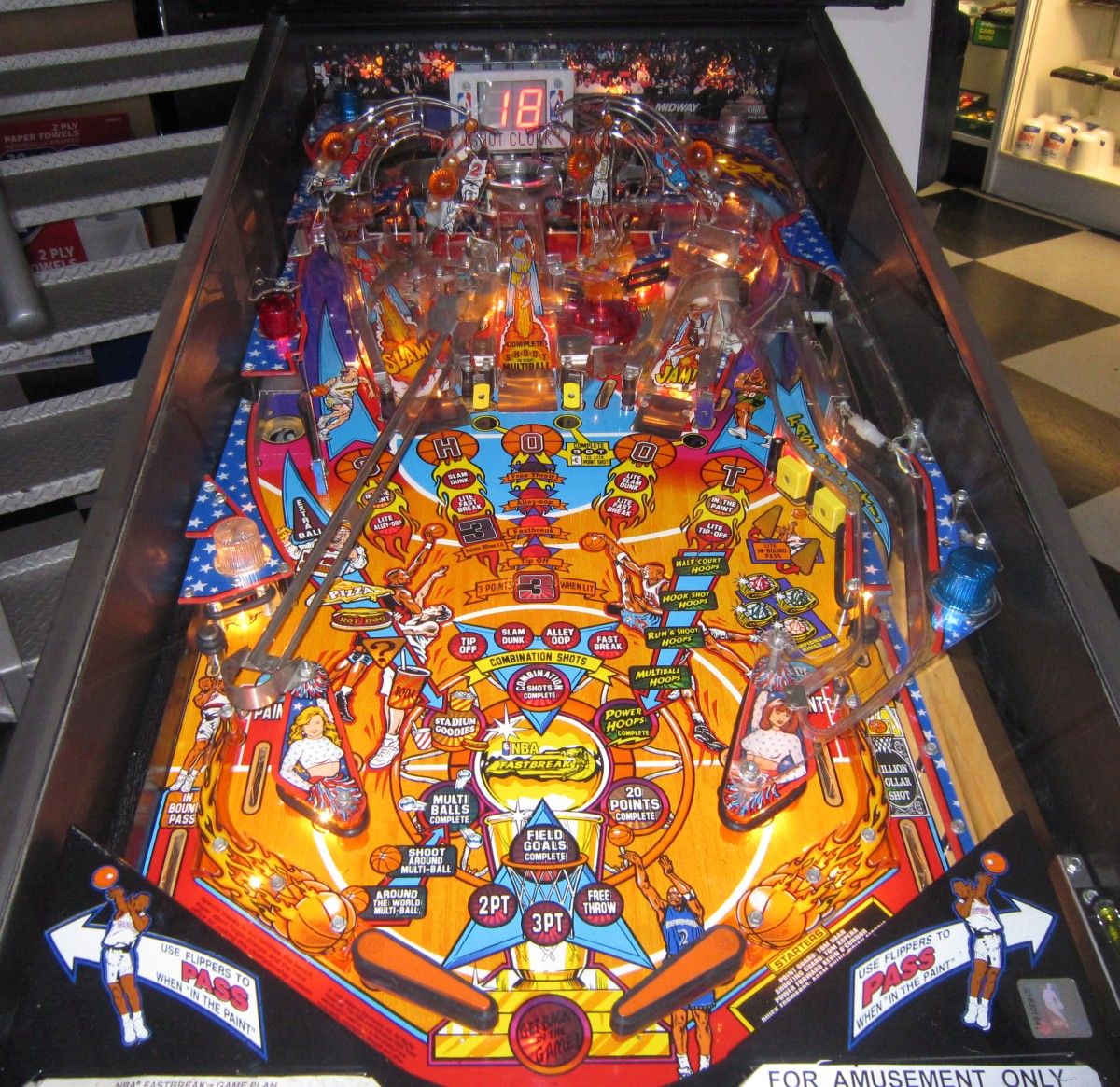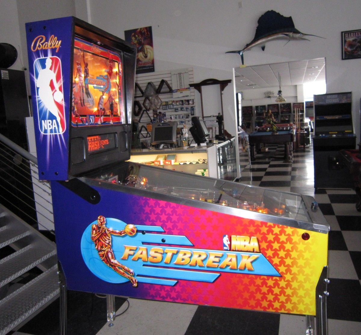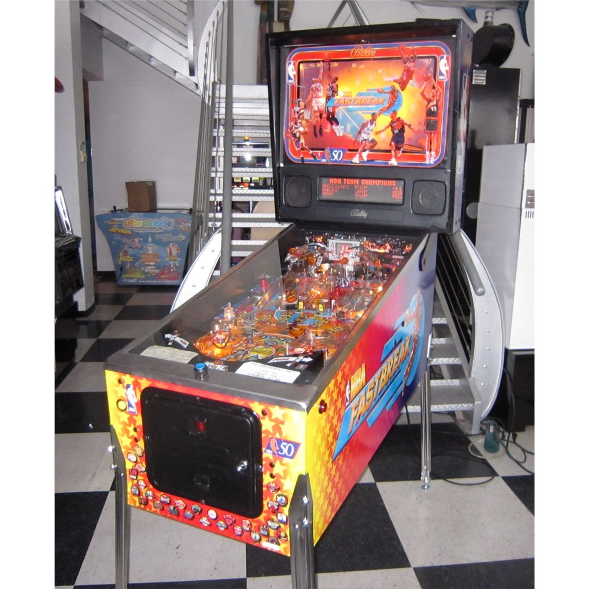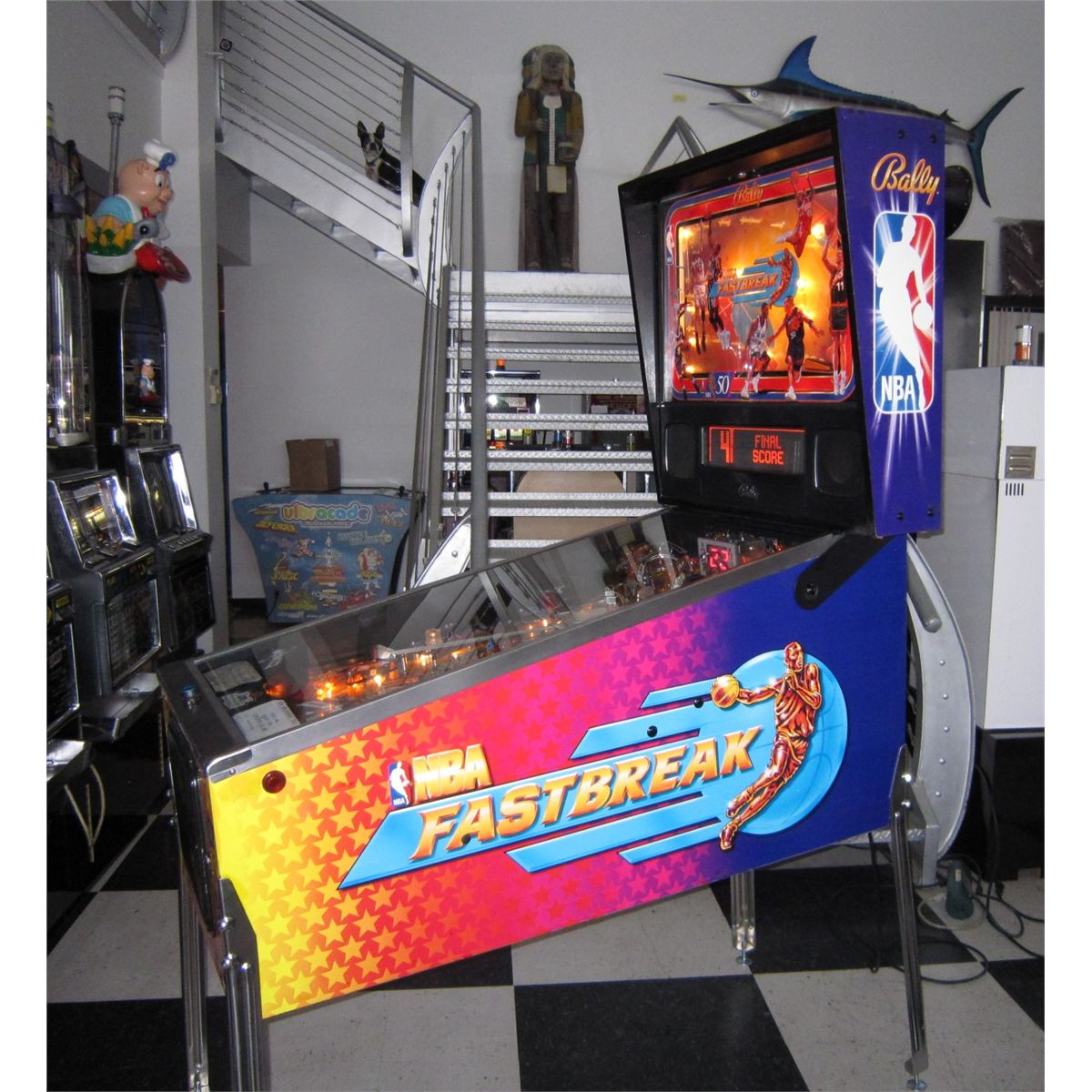 Fast Breaking play begins by picking your favorite team from NBA Teams and accepting the challenge to improve your team's record. The challenge continues when each player competes to win a championship ring by completing each of the six main goals, all while shooting baskets and scoring just like real basketball. The game is in very good condition from the playfield to the cabinet. It has been fully shopped with the playfield cleaned and polished and all functions checked for proper operation by a pinball technician.