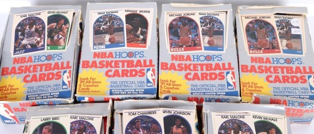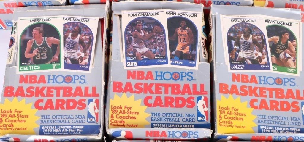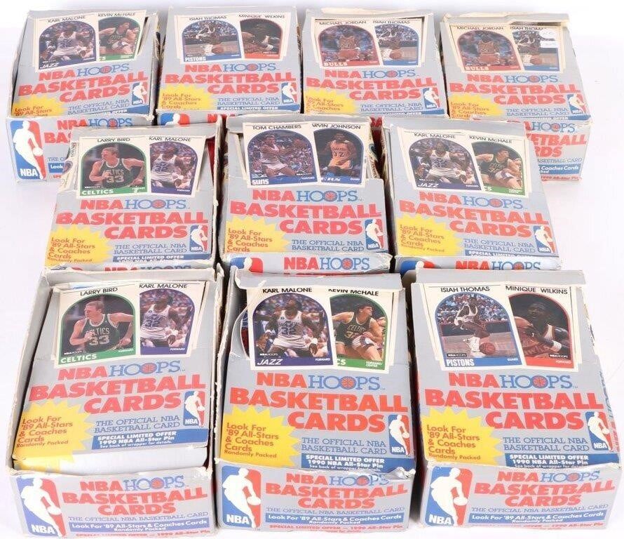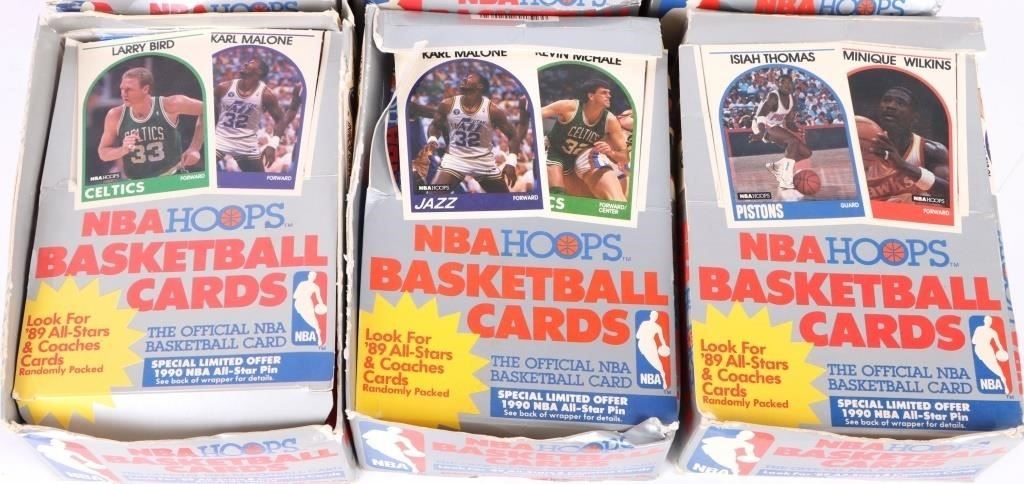 NBA Hoops 1990 All-Star pin unopened boxes. Wear of boxes commensurate with age.