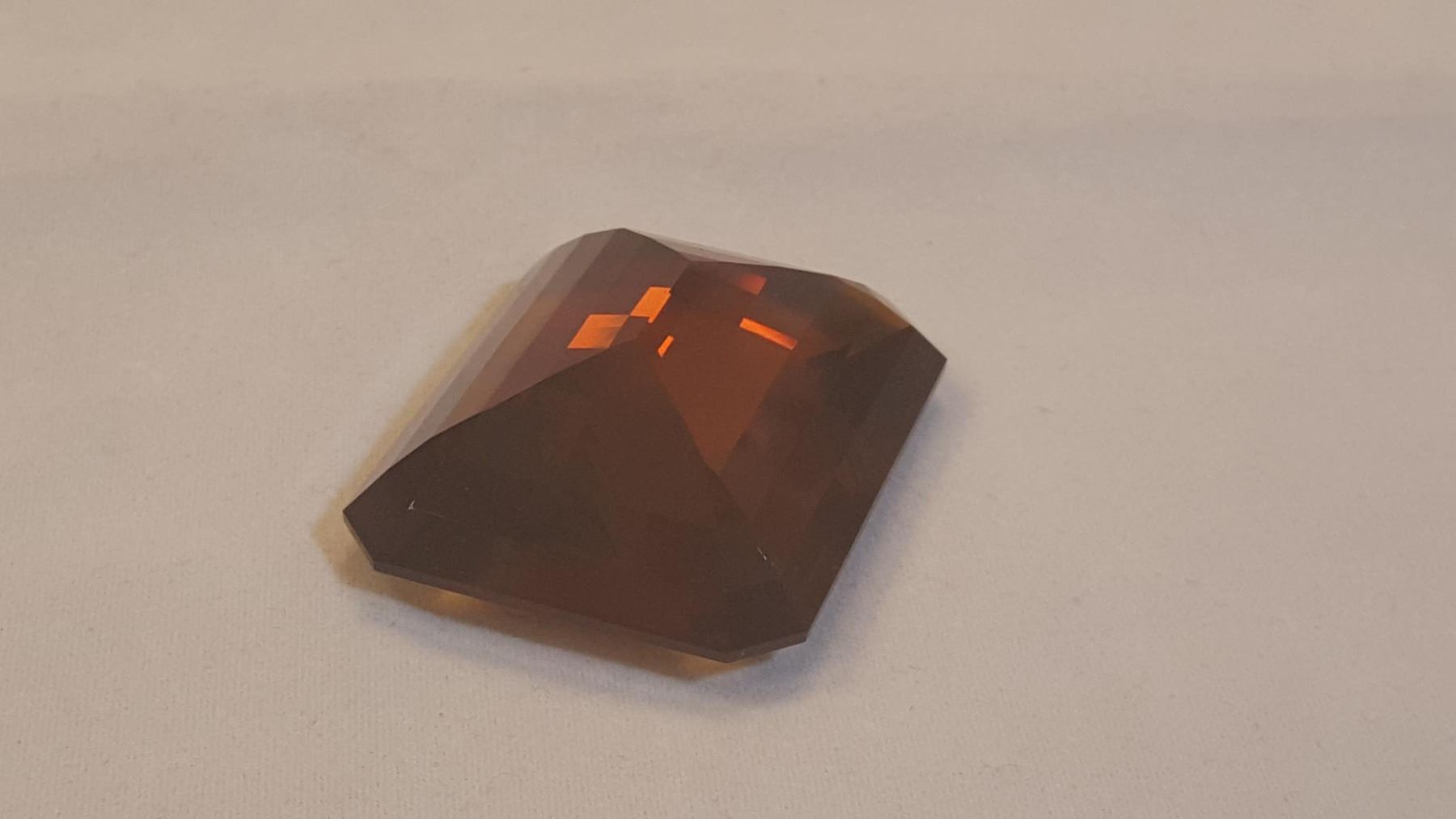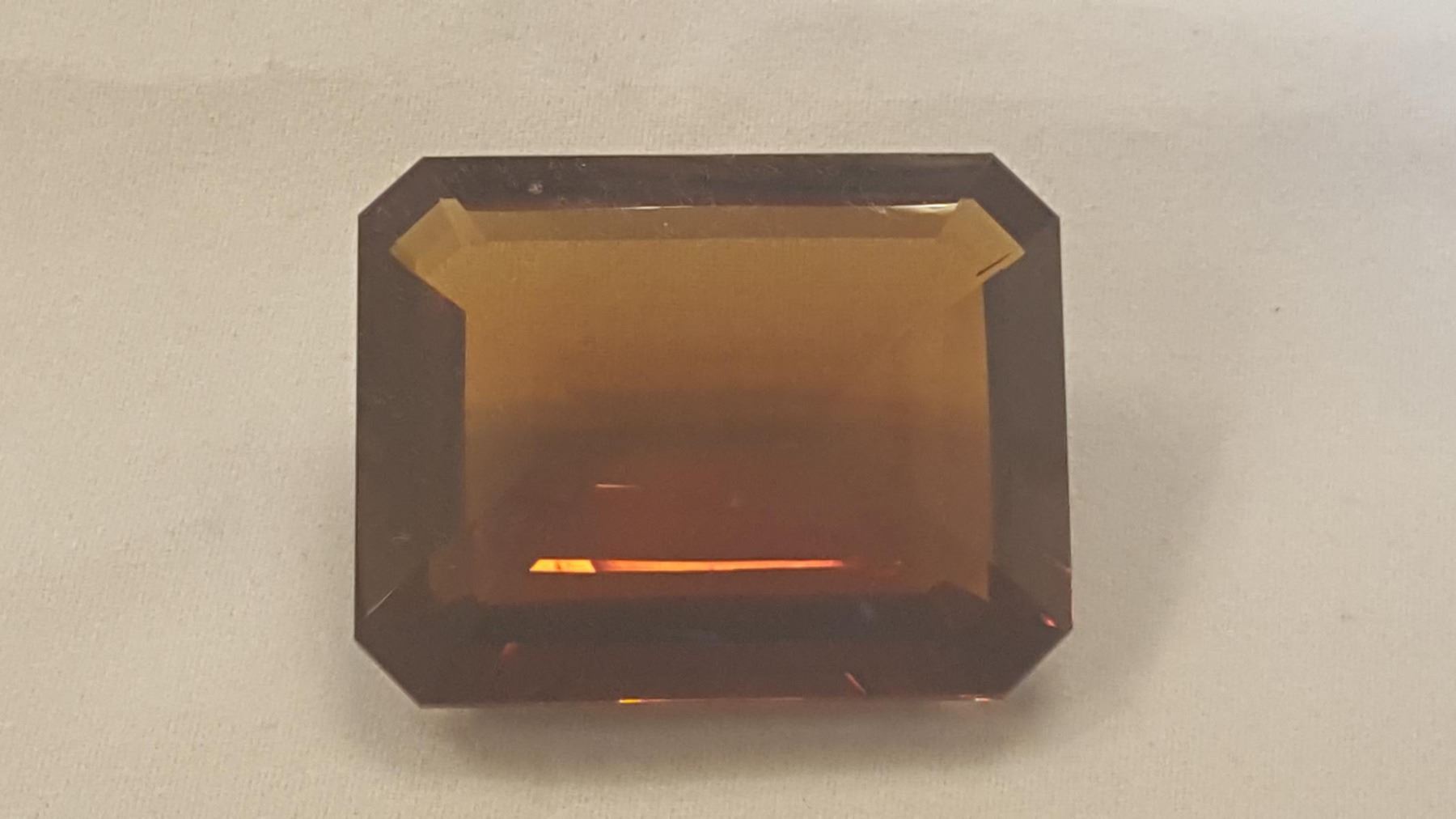 INCREDIBLE 189.05 CT MUSEUM SIZE MADIERA GOLDEN ORANGE CITRINE. DISPLAYING INTENSE COLOR SATRATION WITH A HIGH LUSTER AND A STRONG VIVID TONE. PHENOMINAL CLARITY AND A FINE EMERALD CUT. CITRINE IS ONE OF THE FEW GEMSTONES THAT NATURALY OCCURS IN GOLDEN TO YELLOW COLOR ALTOUGH HEATING THE STONE WILL INTENSIFY THE COLOR CREATING A HIGHER VALUE. HEAT TREATED