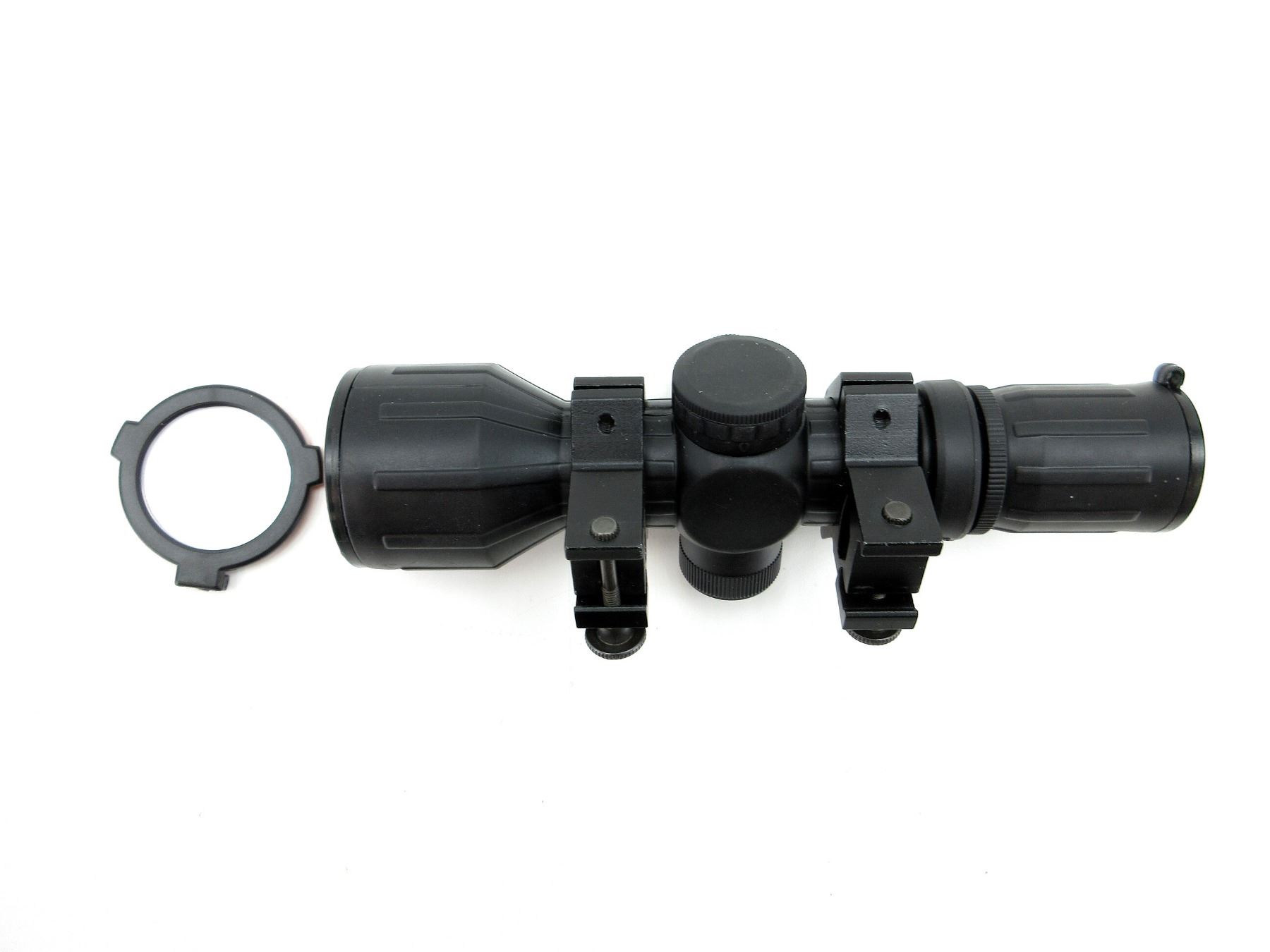 (1) CLEAR OPTICS, WORKING RED / GREEN ILLUMINATED RETICLE, WITH VARIOUS BRIGHTNESS SETTINGS, 30MM TUBE DIAMETER, WINDAGE & ELEVATION KNOBS TURN, WITH MOUNTING BASE, FLIP UP LENS COVER BROKEN, INSTRUCTION MANUAL, ORIGINAL BOX, SHOWS SOME WEAR & TEAR / USE MARKS. SEE PHOTOS.