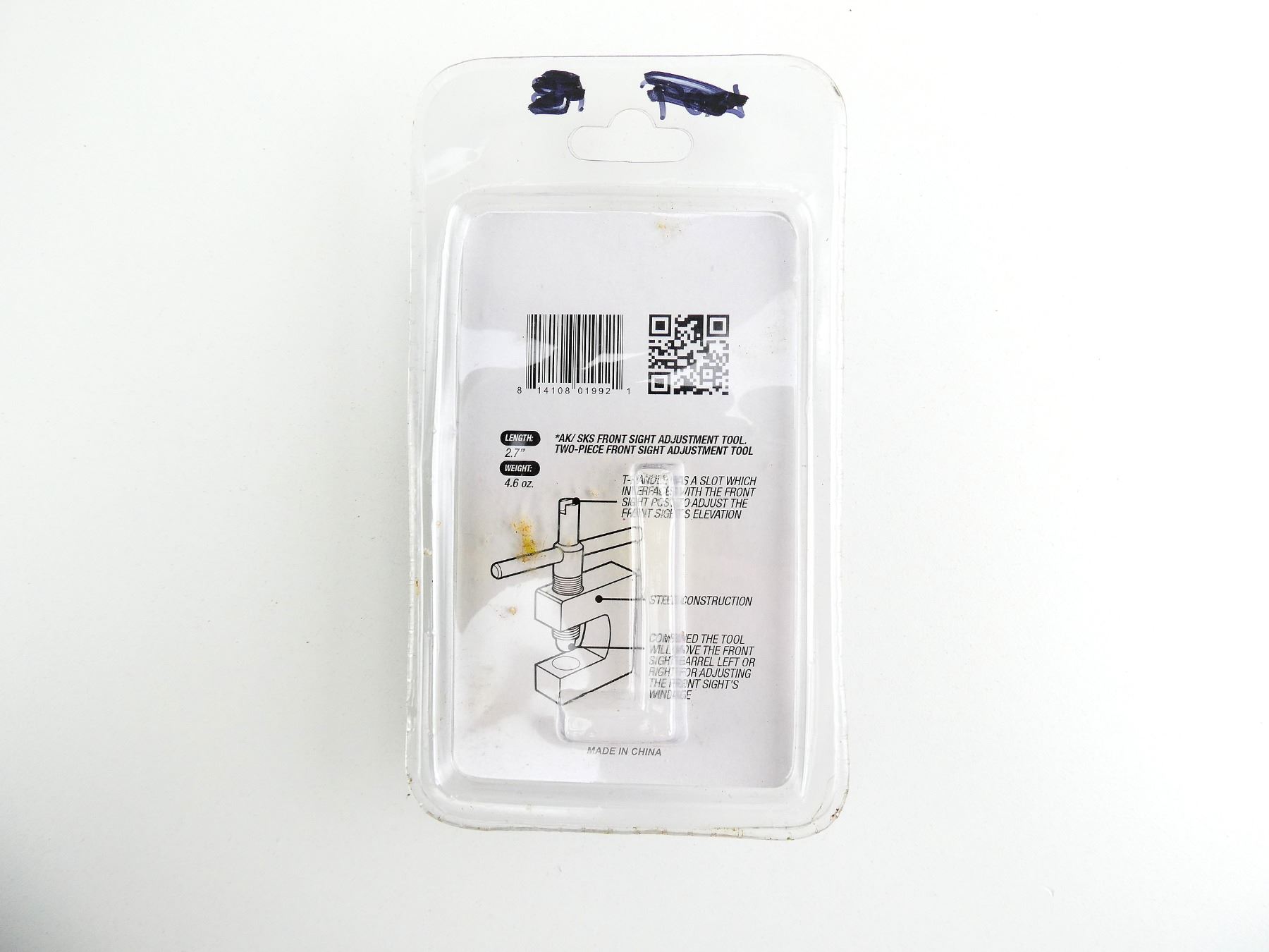 (1) FRONT SIGHT ADJUSTMENT TOOL, FITS AK / SKS, MODEL # TAK, APPEARS NOS IN ORIGINAL PACKAGING. MAY REQUIRE FITTING. SEE PHOTOS.