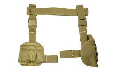 NCSTAR, Drop Leg Holster & Mag Pouch, Triple Magazine Pouch, Right Hand, Tan, Nylon
