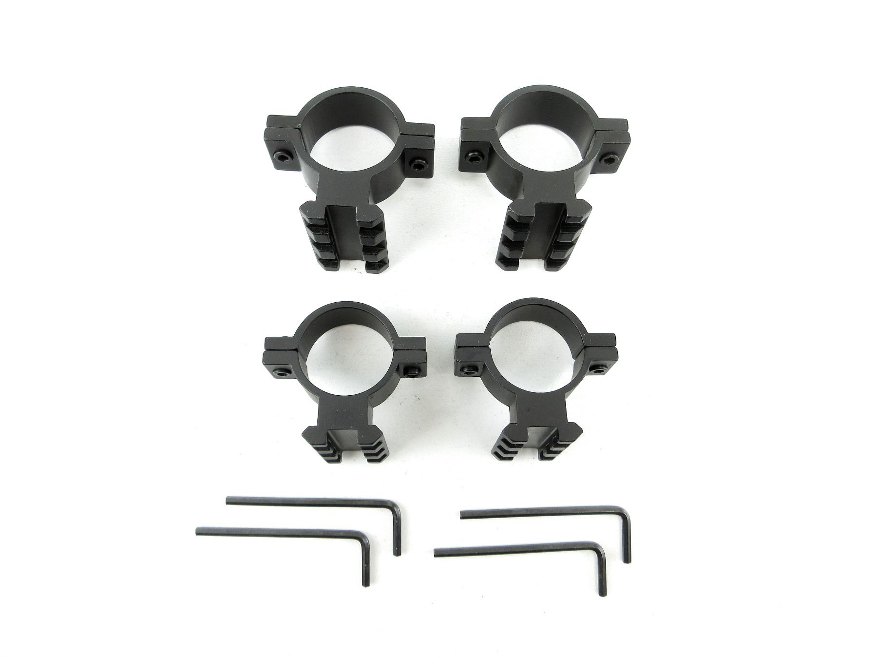 LOT INCLUDES; (4) NCSTAR SCOPE MOUNT ADAPTERS, WITH WEAVER RAILS, 1" DIAMETER, ALUMINUM CONSTRUCTION, WITH ORIGINAL BOX. SEE PHOTOS.