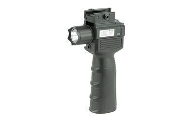 This NCSTAR Vertical Forend Grip features and integrated tactical flashlight and green aiming laser, and is compatible with Weaver/Picatinny type rails. Its textured ergonomic grip is made from lightweight glass reinforced nylon, while the upper is hard anodized aluminum for rock solid mounting. Powered by two CR123A lithium batteries (included).