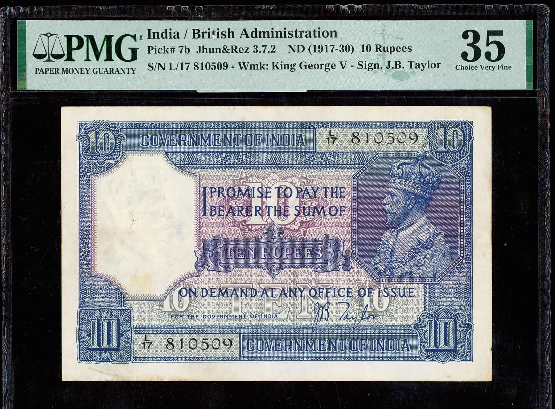 ND (1917-30) Indian / British Administration, Government Of India Pick #7b 10 Rupees PMG 35 Choice V