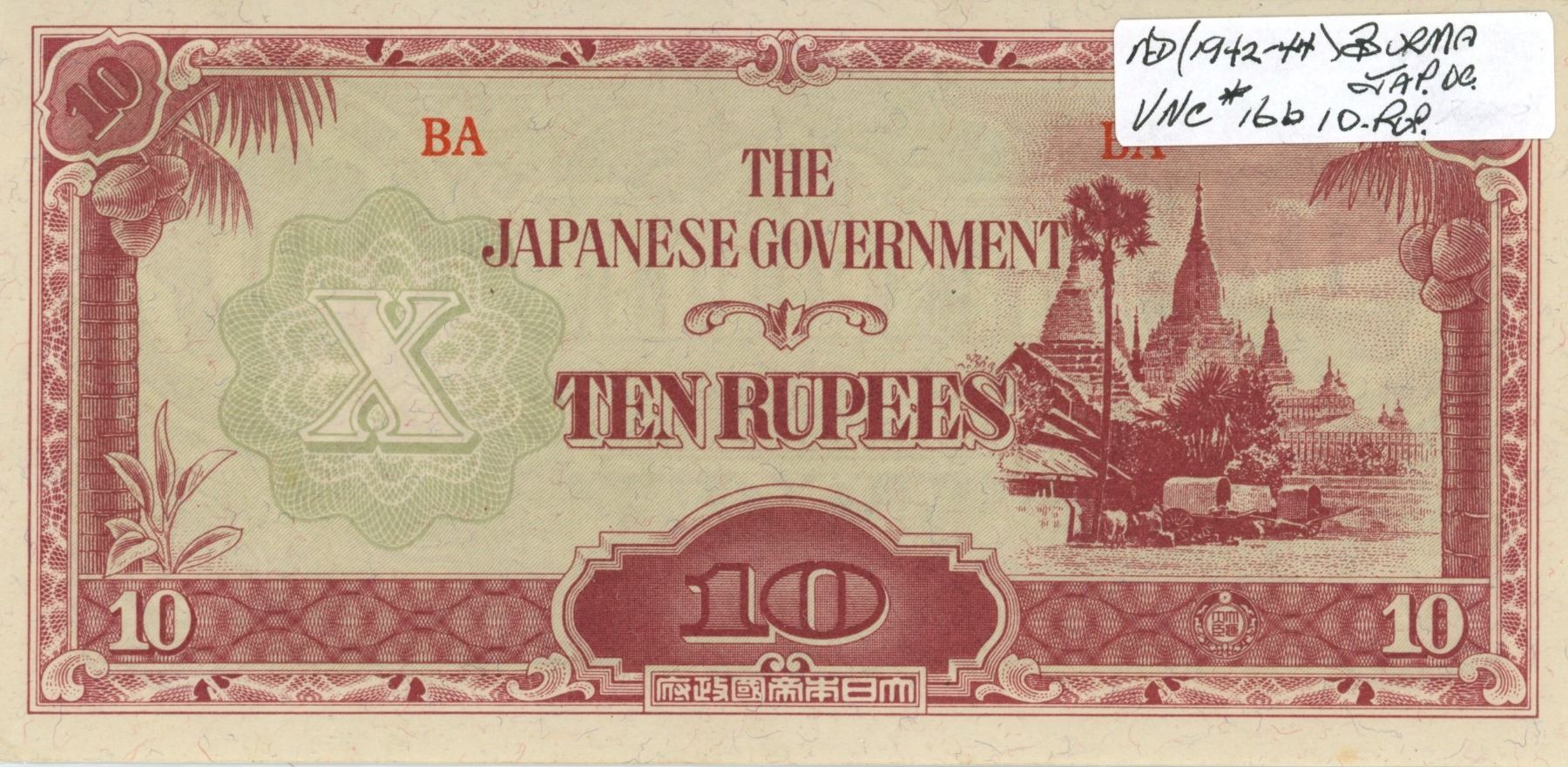 ND (1942-44) Burma (Japanese OCC) Ten Rupees - Cat #16b - UNC