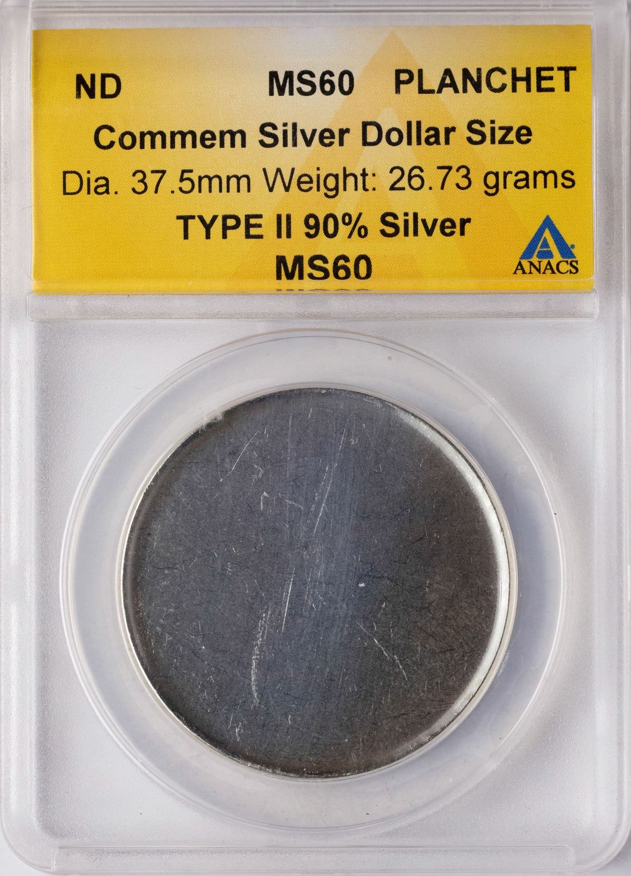 One ND Commemorative Silver Dollar Planchet Coin ANACS MS60.