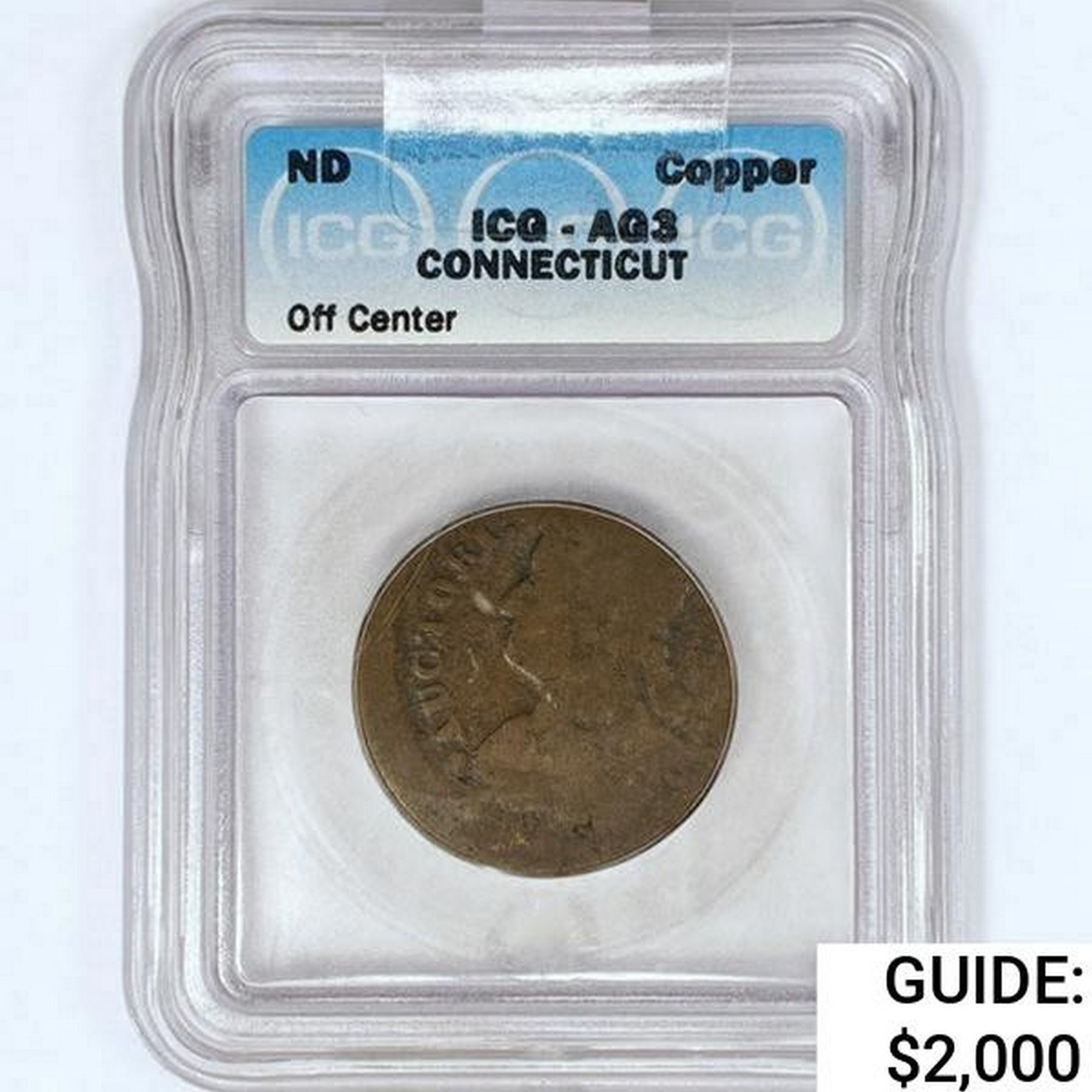 ND Copper Connecticut Token ICG AG$3 Off Center