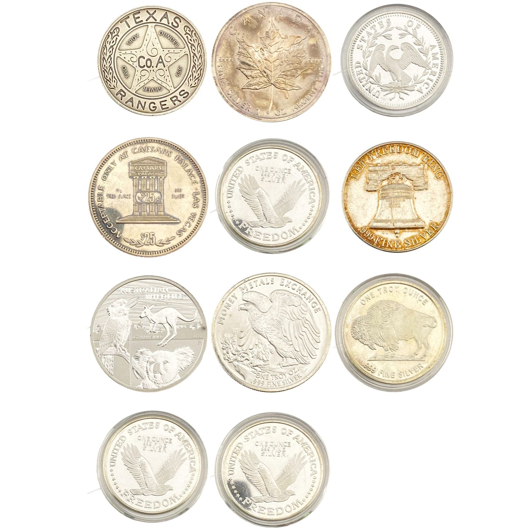 ND US and Foreign Silver Round Lot 13.5oz Total [11]