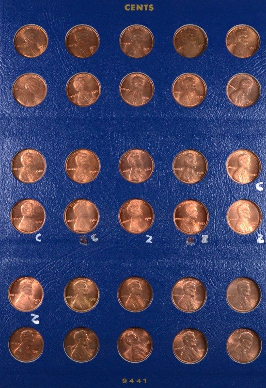 NEAR COMPLETE SET of LINCOLN CENTS, 1909-2014, MISSING 6 COINS