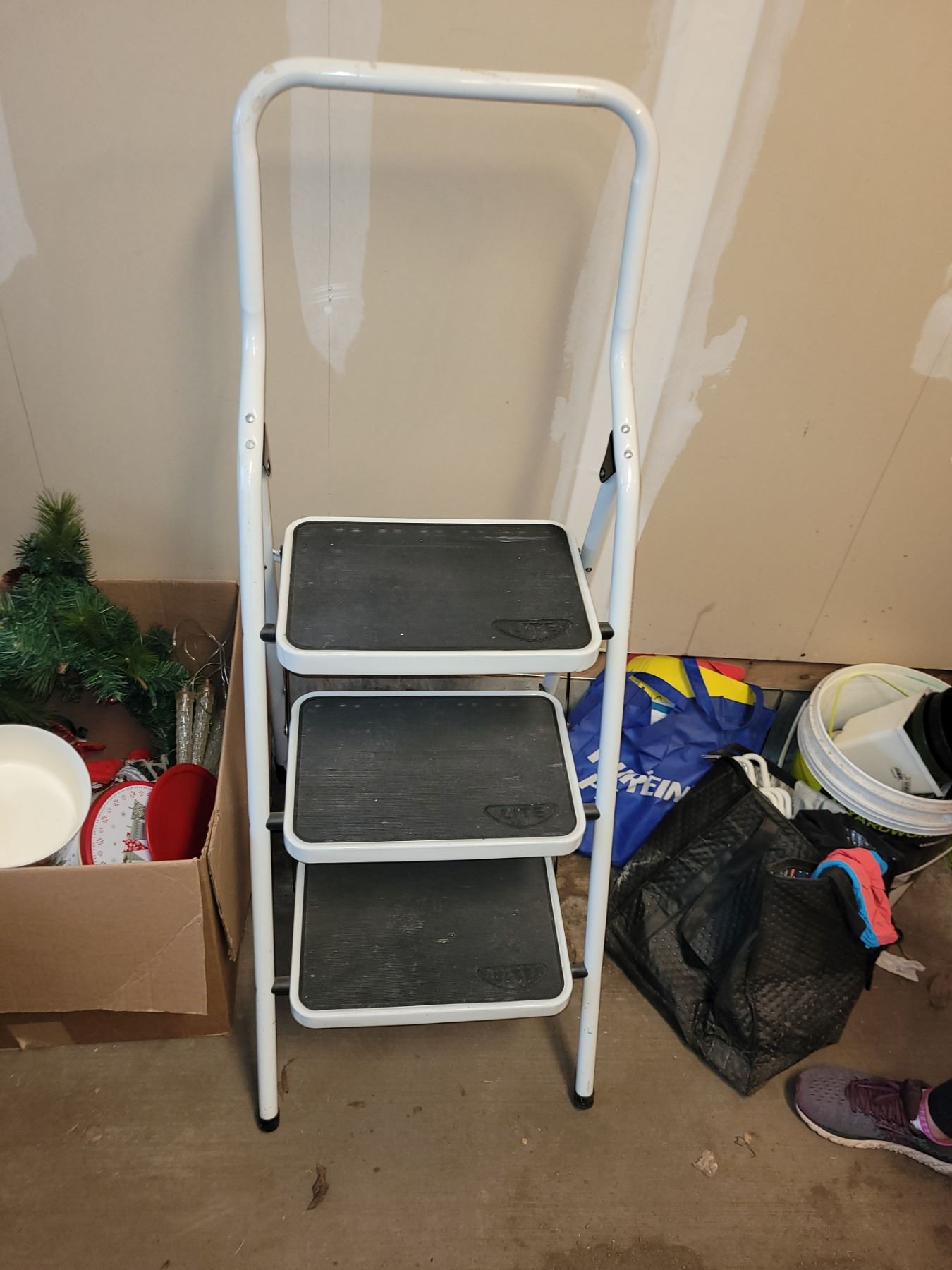 NEAR NEW 3-STEP UTILITY LADDER. AS IS WHERE IS. NO REFUND. NO RETURNS
