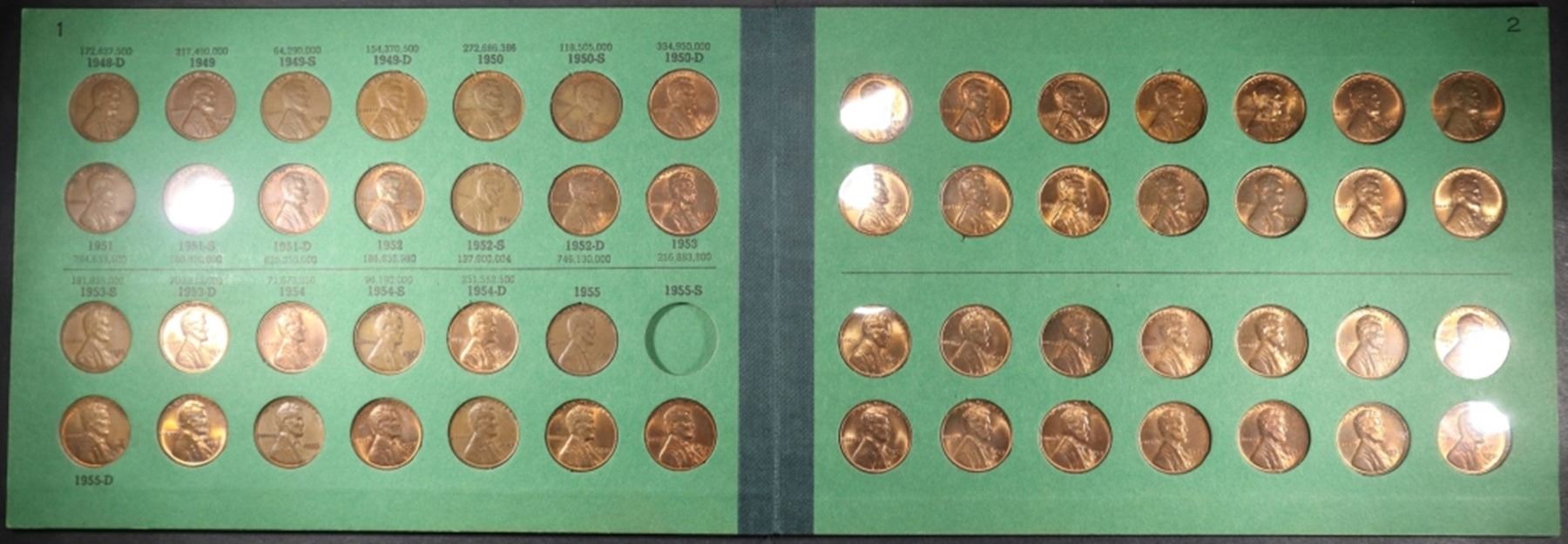 LINCOLN CENTS (DATES RANGE: 1948-1955) MISSING 1 COIN, (34) ADDITIONAL COINS INCLUDED ESTIMATE $90 - $130.
