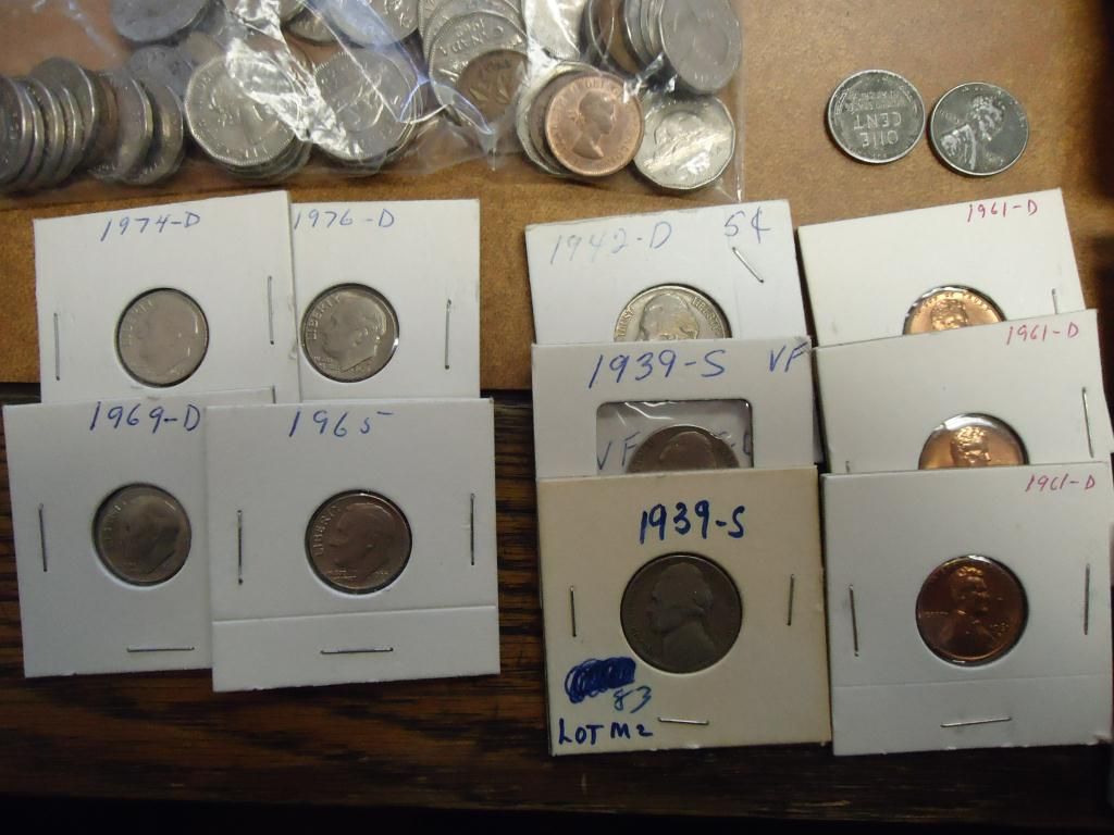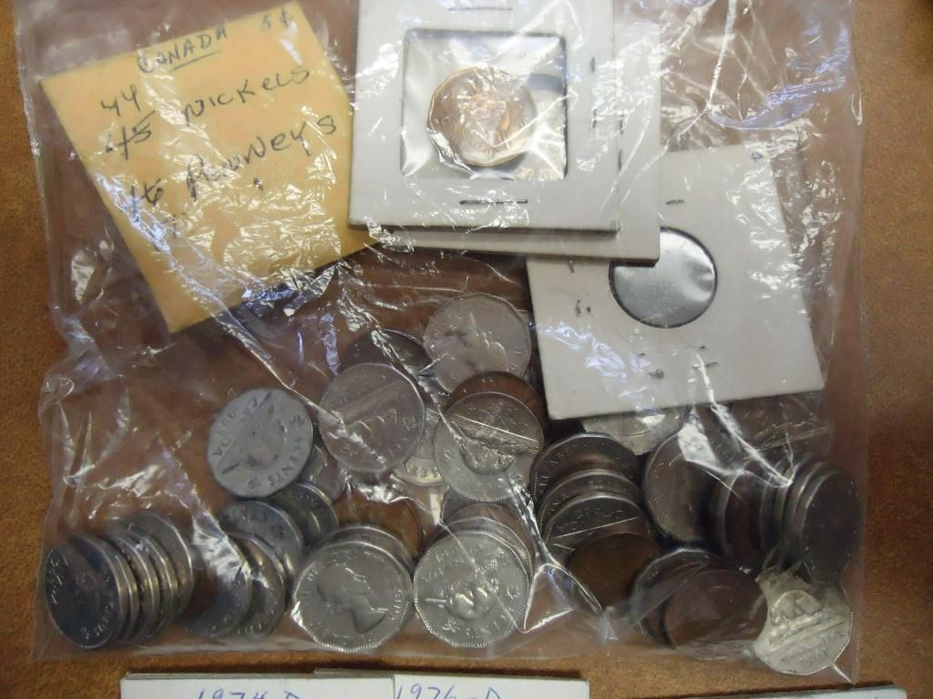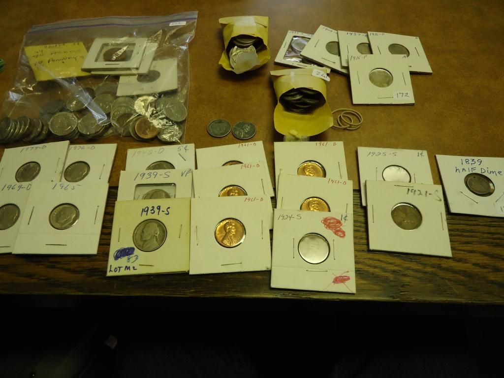 1839 HALF DIME, 8 ASSORTED LINCOLN CENTS, 3 JEFFERSON NICKELS, 4 ROOSEVELT DIMES, 35 STEEL CENTS, 17 CANADA CENTS, 44 CANADA 5 CENTS AND 30 ASSORTED BUFFALO NICKELS