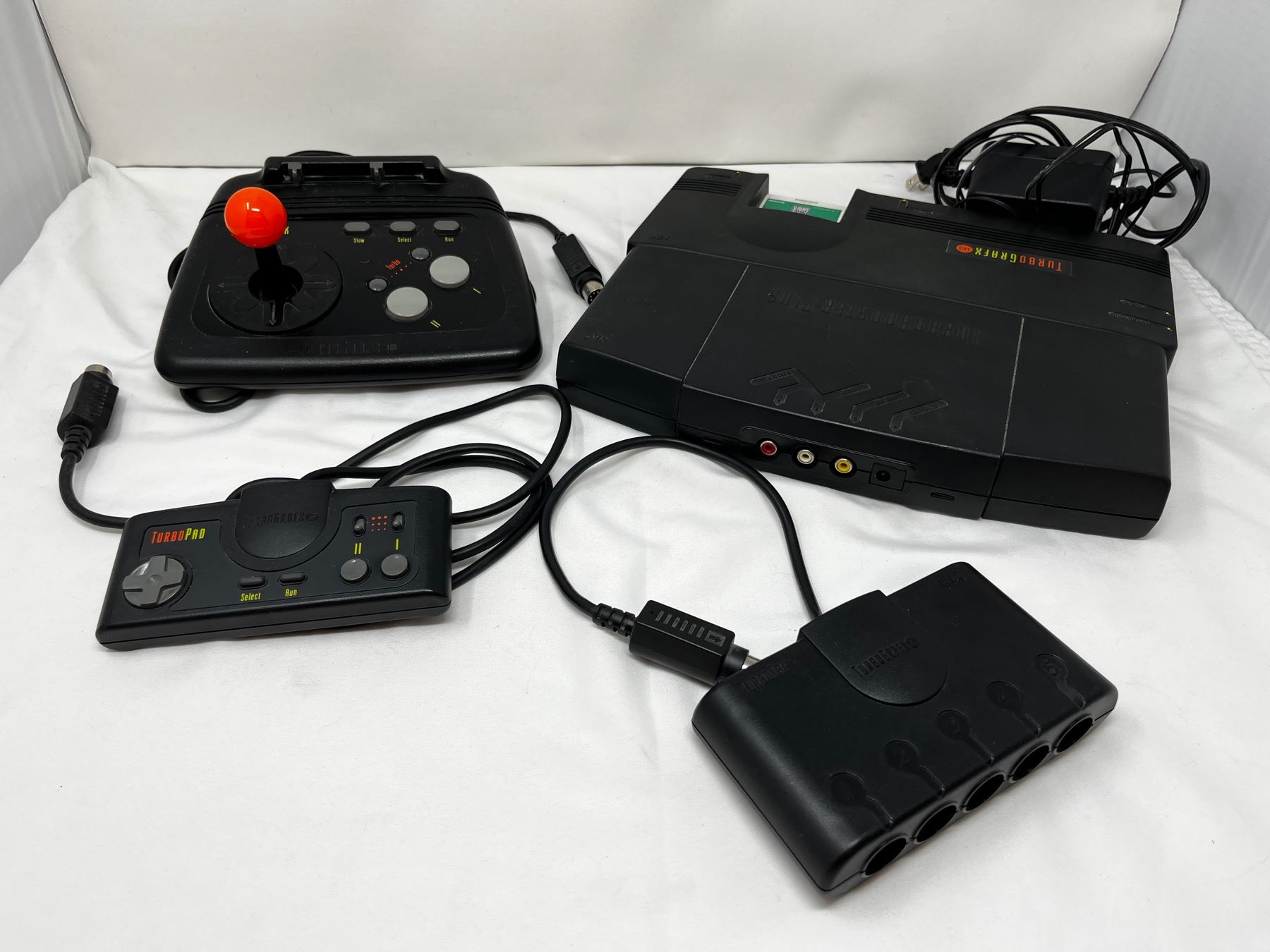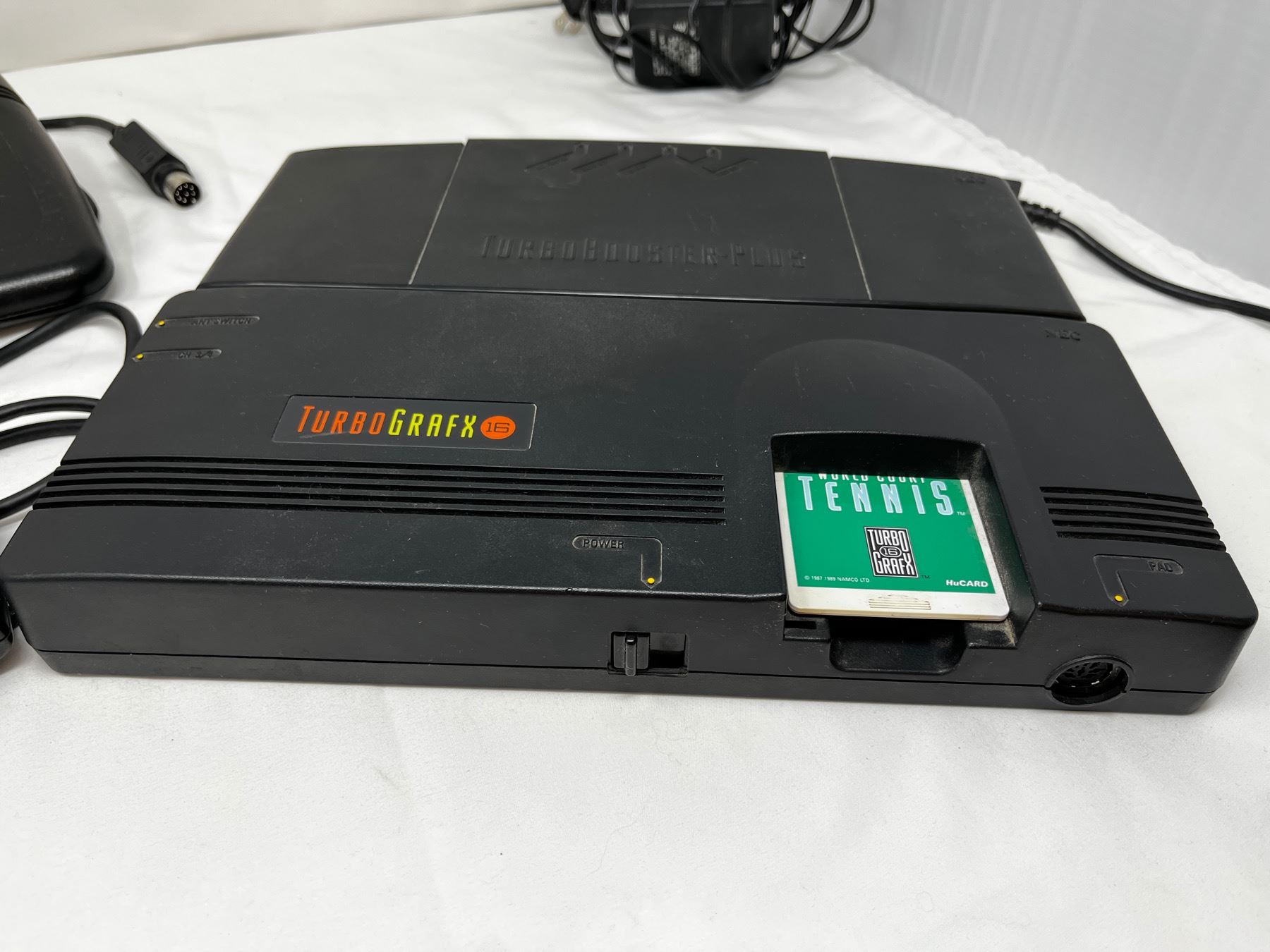 NEC Turbo graxix console with mixed controllers and world court tennis game included *untested*