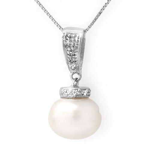 ACA Certified 0.15ct DIAMOND & 11-12mm PEARL NECKLACE 14KT WHITE GOLD WITH 16" CHAIN