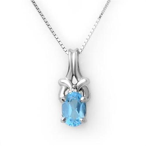 Simply radiant. An oval cut blue topaz gemstone glistens in a prong setting in this gorgeous white gold pendant. Round diamond shimmers at the top of the gemstone, finished with a highly polished bail.<BR><BR>During the Middle ages, a blue topaz was thought to heal both physical and mental disorders.