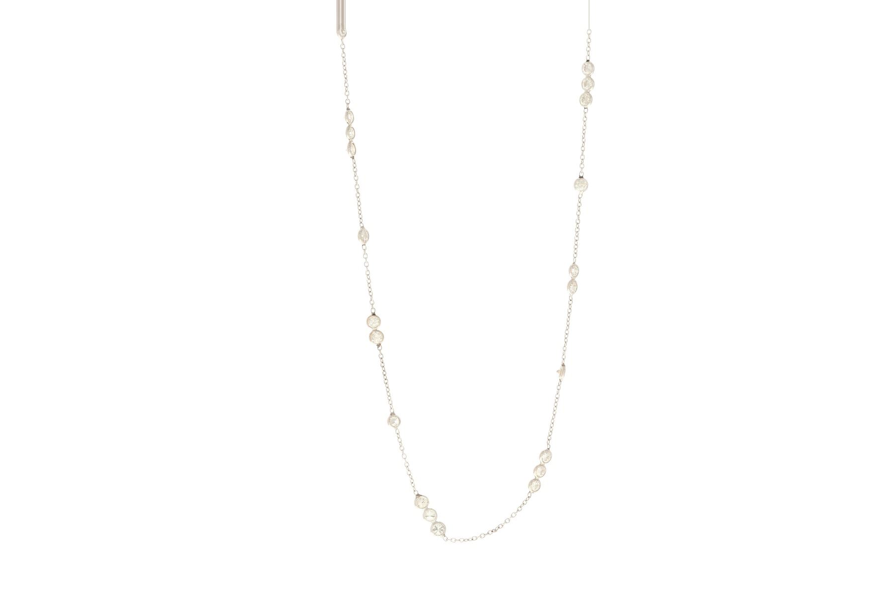 NECKLACE: [1] 18 karat white gold chain necklace with 28 bezel set round diamonds, approx. 2.52 carats total weight, H/I color, VS2-SI1 clarity; 15s; 3.2 grams