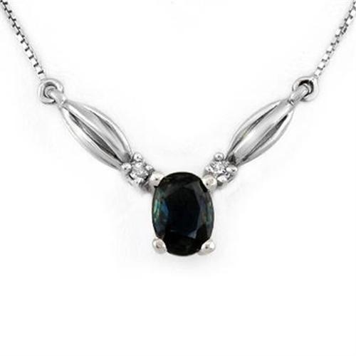 GENUINE 1.30 ctw DIAMOND & BLUE SAPPHIRE LADIES NECKLACE IN 10KT WHITE GOLD WITH 16" CHAIN