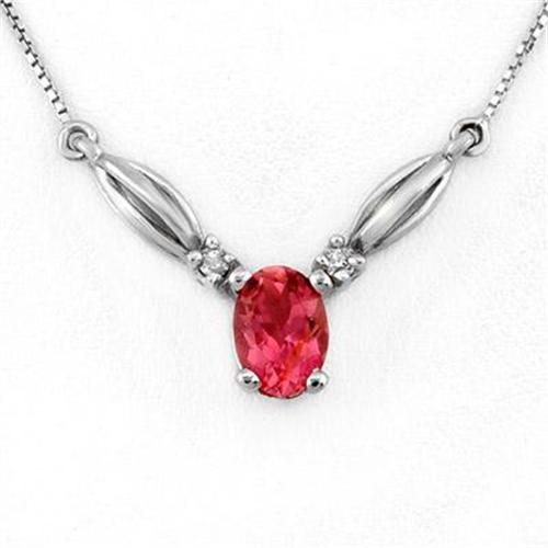 GENUINE 1.30 ctw DIAMOND & PINK TOURMALINE LADIES NECKLACE IN 10K WHITE GOLD WITH 16" CHAIN