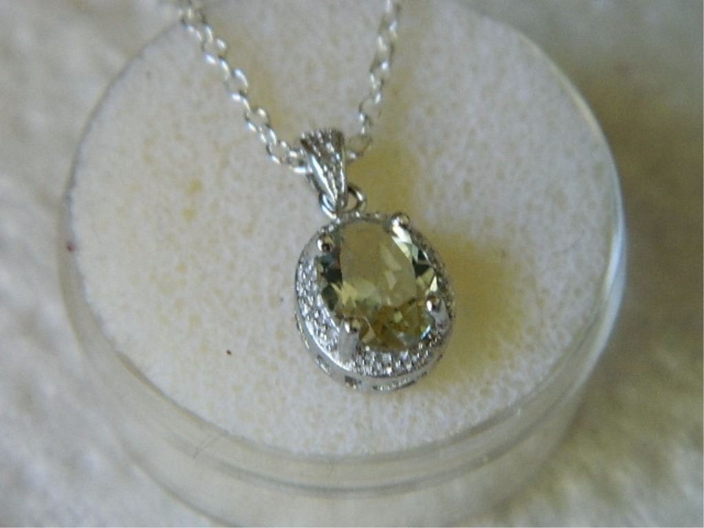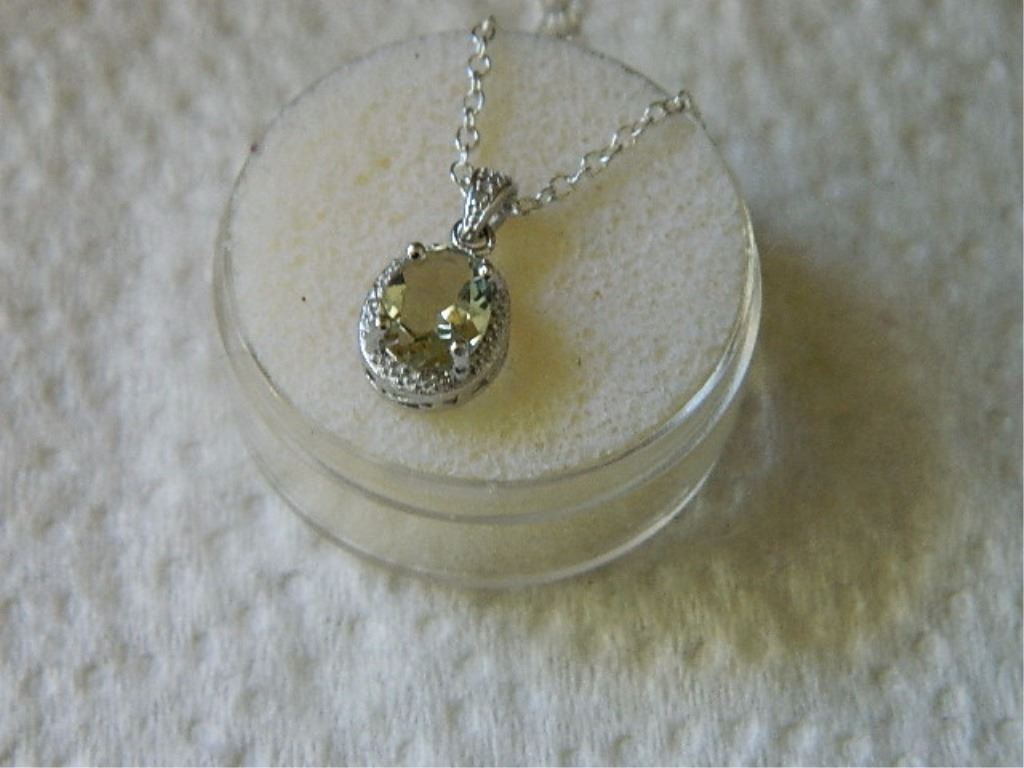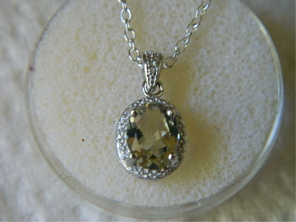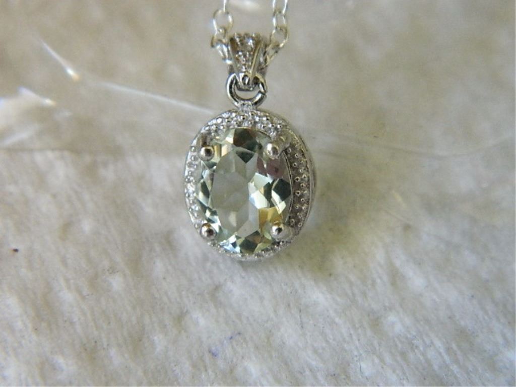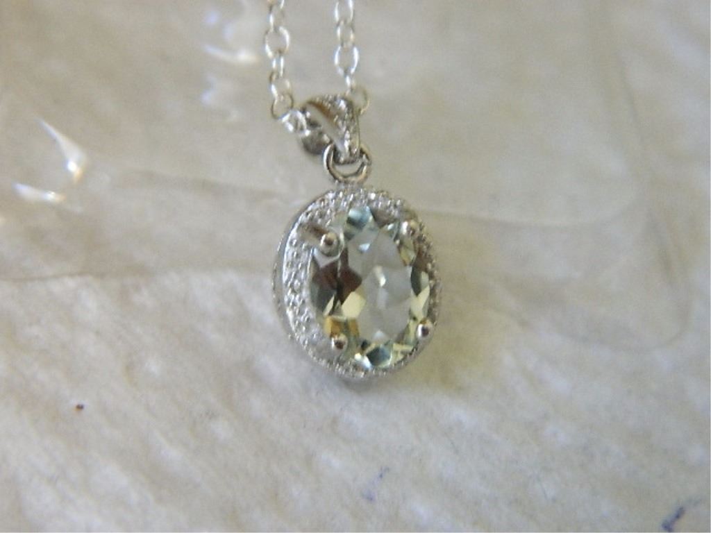NECKLACE - 1.75 CT OVAL FACETED GREEN AMETHYST & DIAMOND IN STERLING SILVER SETTING - INCLUDES CERTIFICATE $325