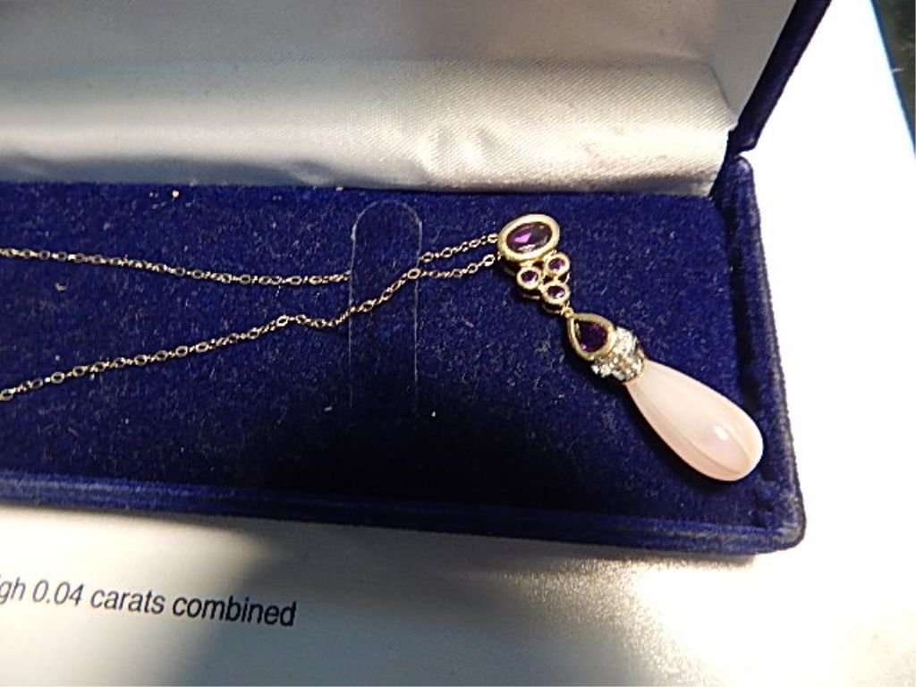 NECKLACE - 10K GOLD WITH MOTHER OF PEARL & AMYTHYST - CERFICATE VALUE $700