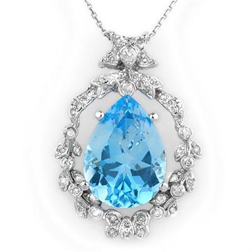 look with this elegant pendant.The pear-cut blue topaz rests in a four-prong setting and is surrounded by a dazzling border of bezel-set diamonds in an antique style.<BR><BR>During the Middle ages, a blue topaz was thought to heal both physical and mental disorders.