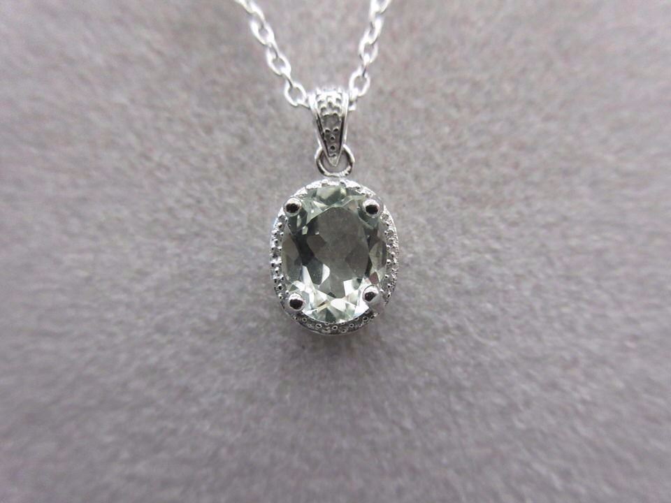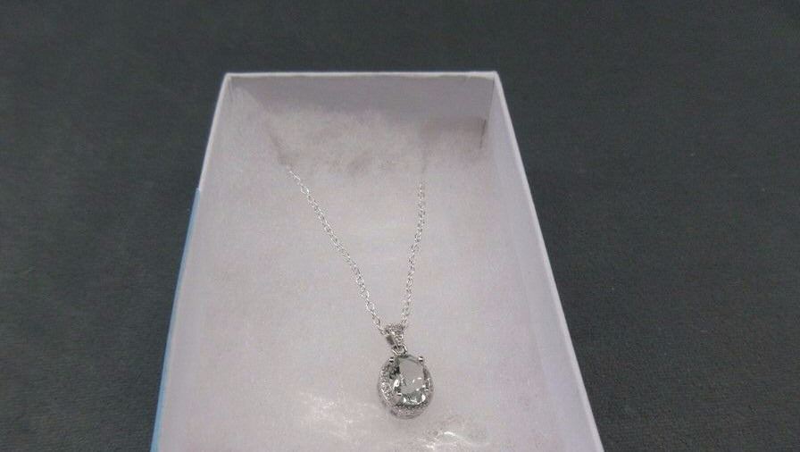 NECKLACE - 2.0 CT OVAL FACETED GREEN AMETHYST & DIAMOND IN STERLING SILVER SETTING - RETAIL ESTIMATE $250