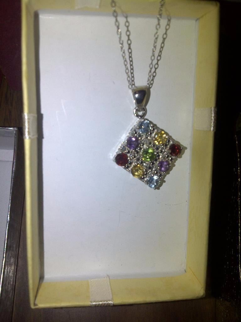 NECKLACE - 2.26 TCW (8) ROUND FACETTED GEMSTONES & (1) DIAMOND IN STAMPED 925 STERLING SILVER SETTING - INCLUDES STERLING SILVER CHAIN - INCLUDES CERTIFICATE $425 (W-40)