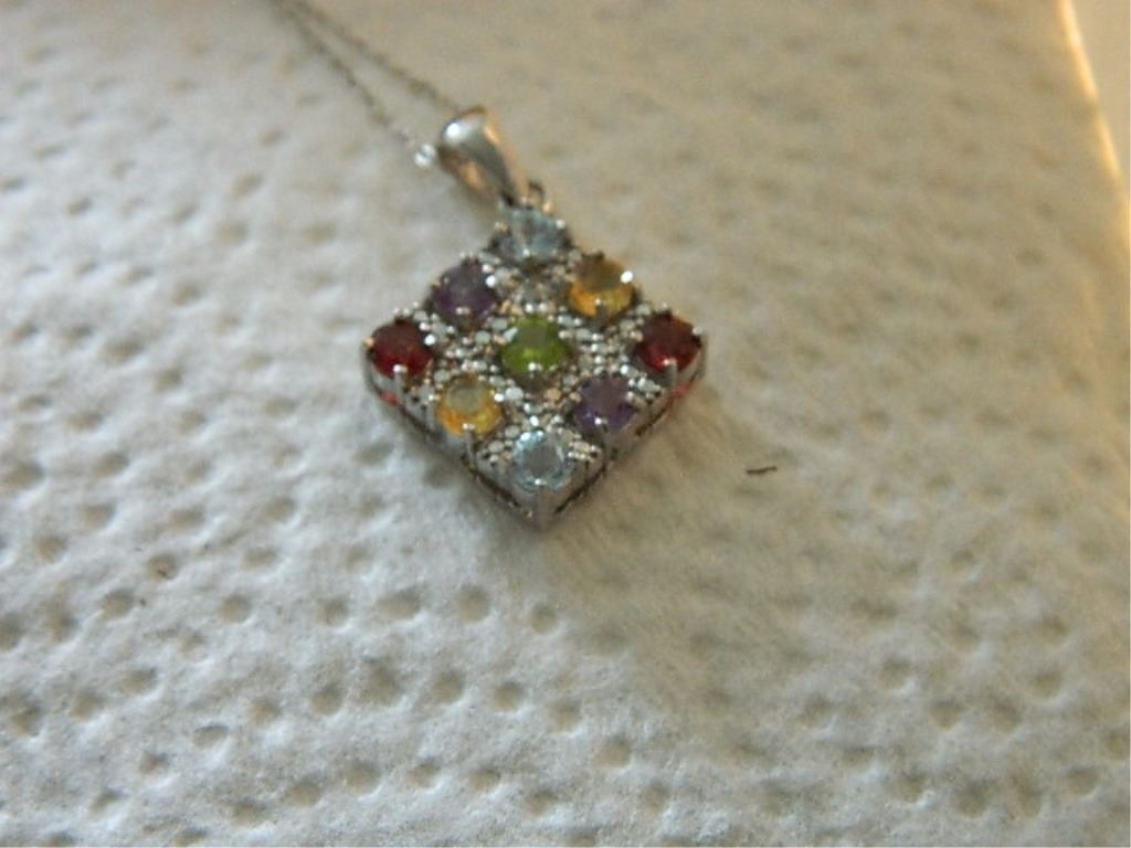 NECKLACE - 2.26 TCW (8) ROUND FACETTED GEMSTONES & (1) DIAMOND IN STAMPED 925 STERLING SILVER SETTING - INCLUDES STERLING SILVER CHAIN - INCLUDES CERTIFICATE $425 (W-40)