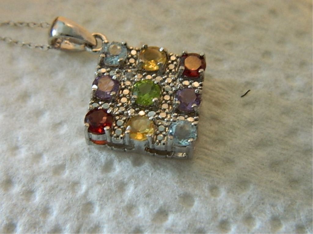 NECKLACE - 2.26 TCW (8) ROUND FACETTED GEMSTONES & (1) DIAMOND IN STAMPED 925 STERLING SILVER SETTING - INCLUDES STERLING SILVER CHAIN - INCLUDES CERTIFICATE $425 (W-40)