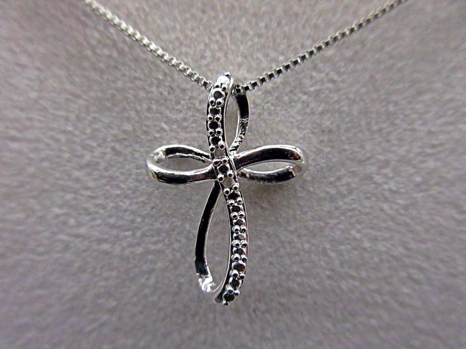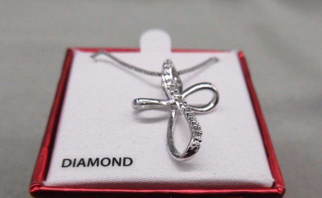 NECKLACE - 2 ROUND FACETED WHITE DIAMONDS IN STERLING SILVER CROSS DESIGNED SETTING - RETAIL ESTIMATE $275