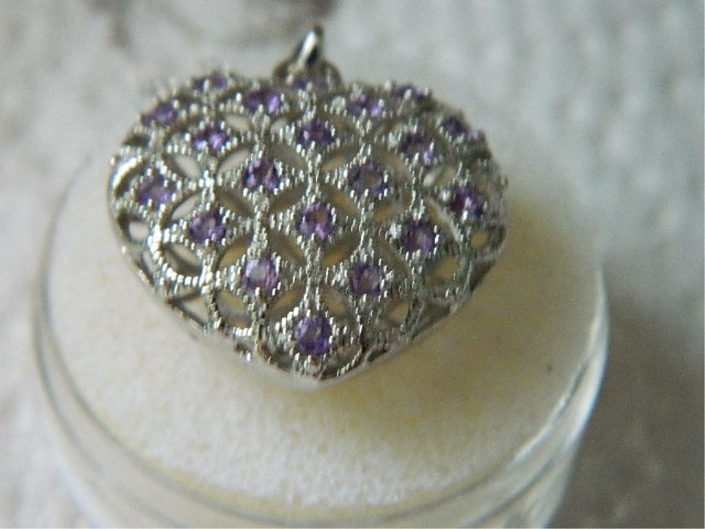 NECKLACE - 20 ROUND FACETED AMETHYST IN STERLING SILVER 3D HEART SETTING - RETAIL ESTIMATE $350