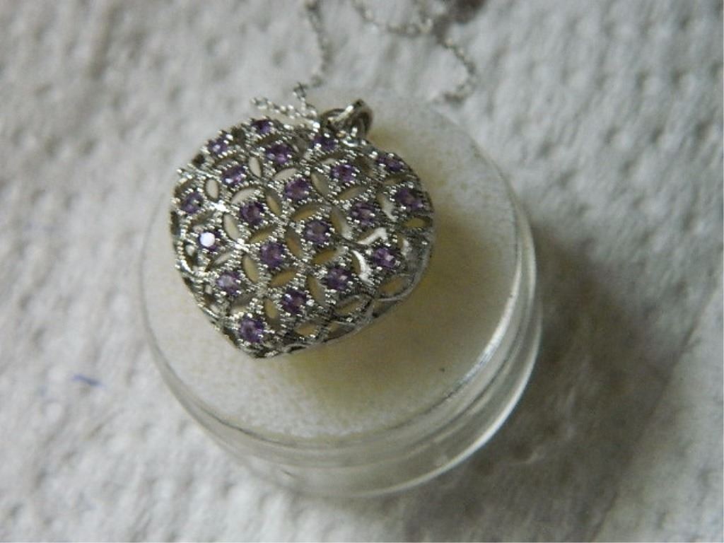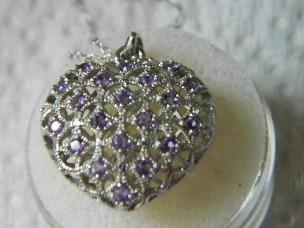 NECKLACE - 20 ROUND FACETED AMETHYST IN STERLING SILVER 3D HEART SETTING - RETAIL ESTIMATE $350