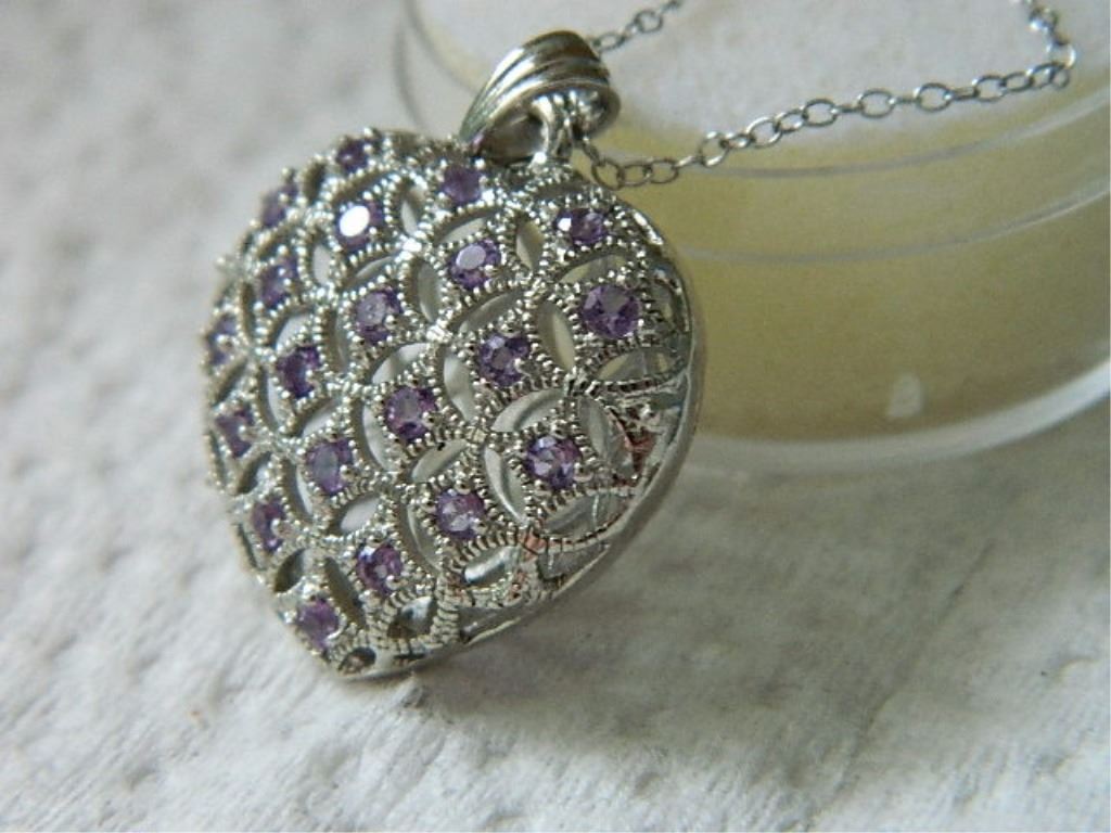 NECKLACE - 20 ROUND FACETED AMETHYST IN STERLING SILVER 3D HEART SETTING - RETAIL ESTIMATE $350