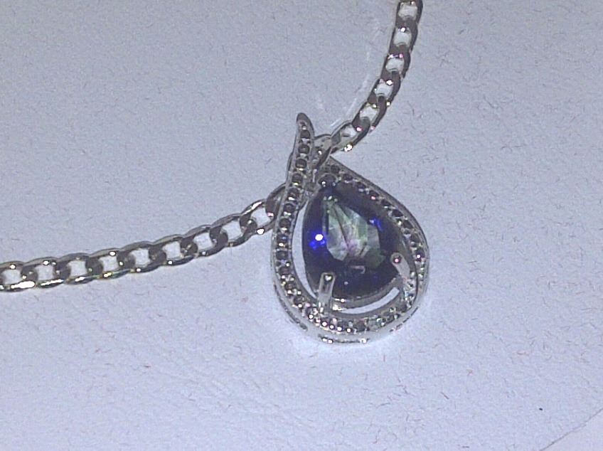 NECKLACE - 2CT PEAR FACETTED LIVELY BLUE PURPLE MYSTIC TOPAZ & ROUND FACETTED DIAMOND IN STAMPED 925 STERLING SILVER SETTING - PLATINUM OVERLAY - INCLUDES STERLING SILVER CHAIN - INCLUDES CERTIFICATE $325 (W-30)