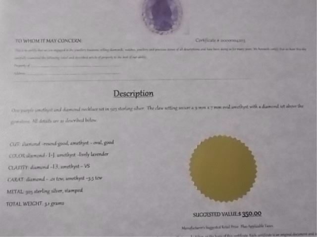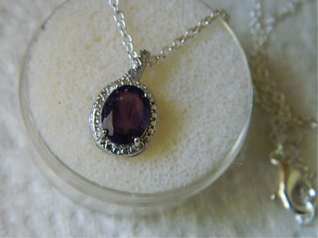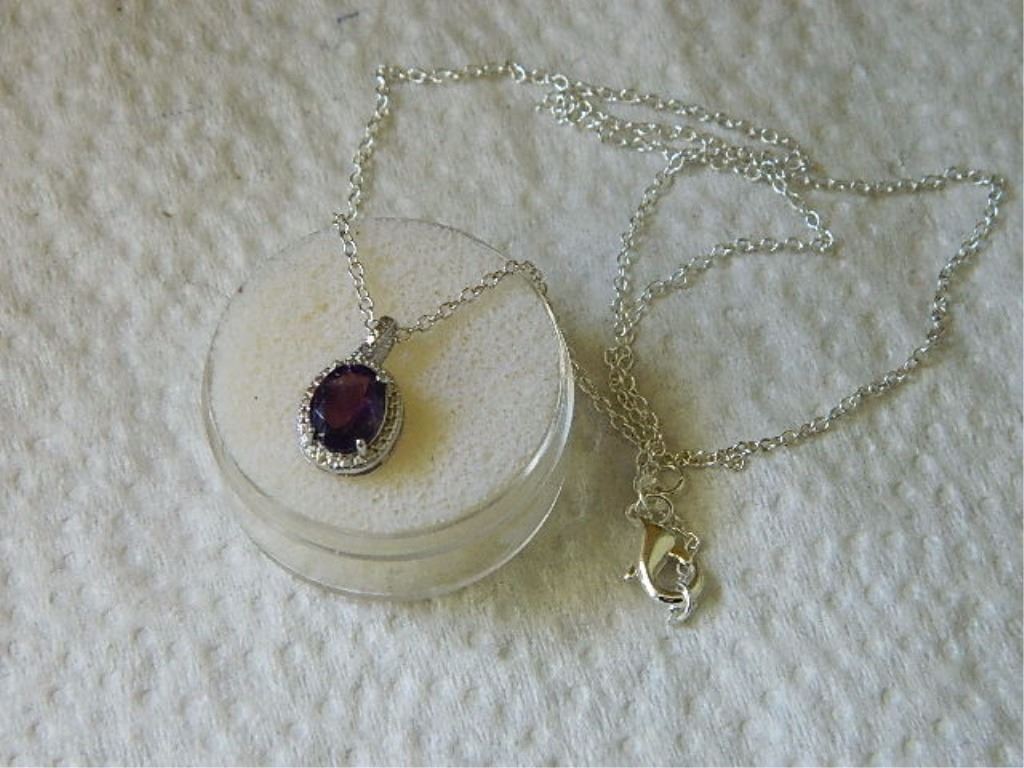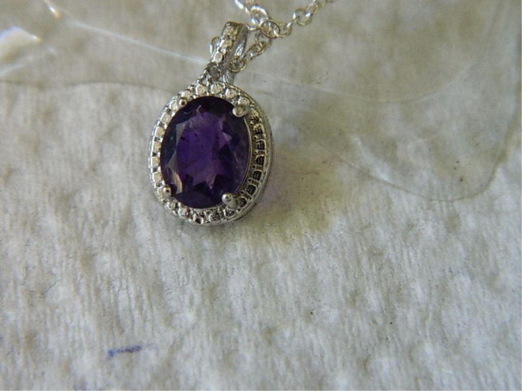 NECKLACE - 3.5CT AMETHYST & DIAMOND NECKLACE OVAL CUT AMETHYST IN STERLING SILVER SETTING - INCLUDES $350 CERTIFICATE