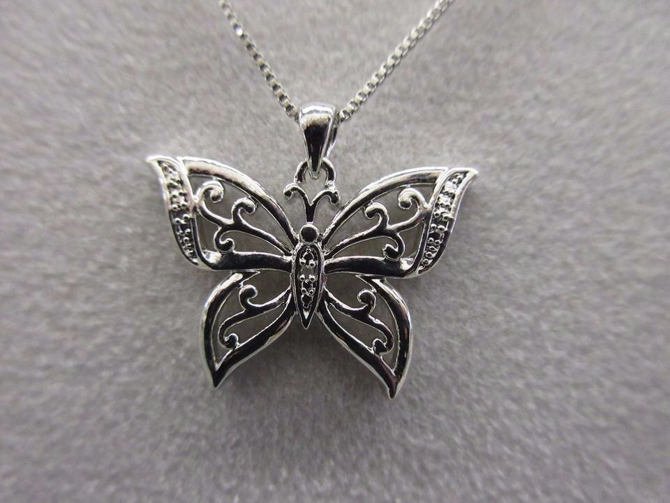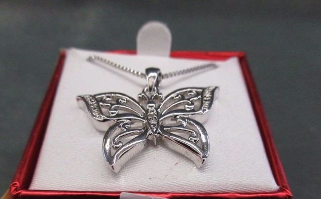 NECKLACE - 3 ROUND FACETED DIAMONDS IN STERLING SILVER BUTTERFLY DESIGNED SETTING - INCLUDES 925 SILVER CHAIN - RETAIL ESTIMATE $225